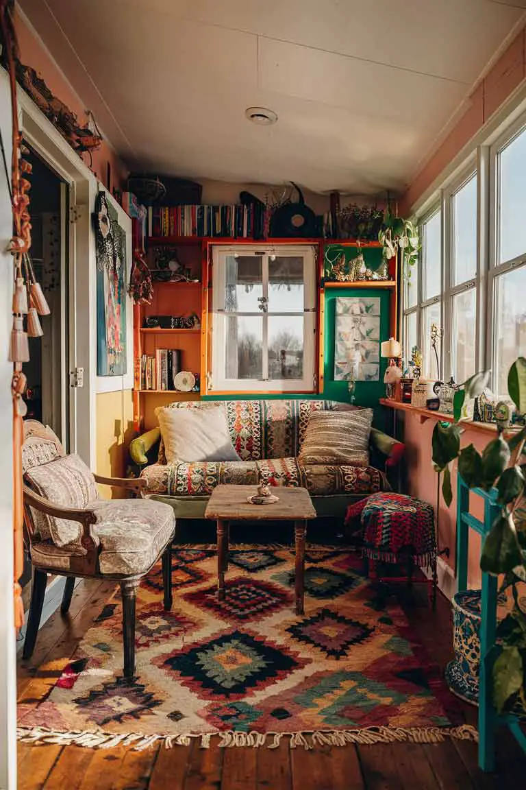 Before exploring specific design ideas, it’s important to understand the core elements that define a bohemian tiny living room: