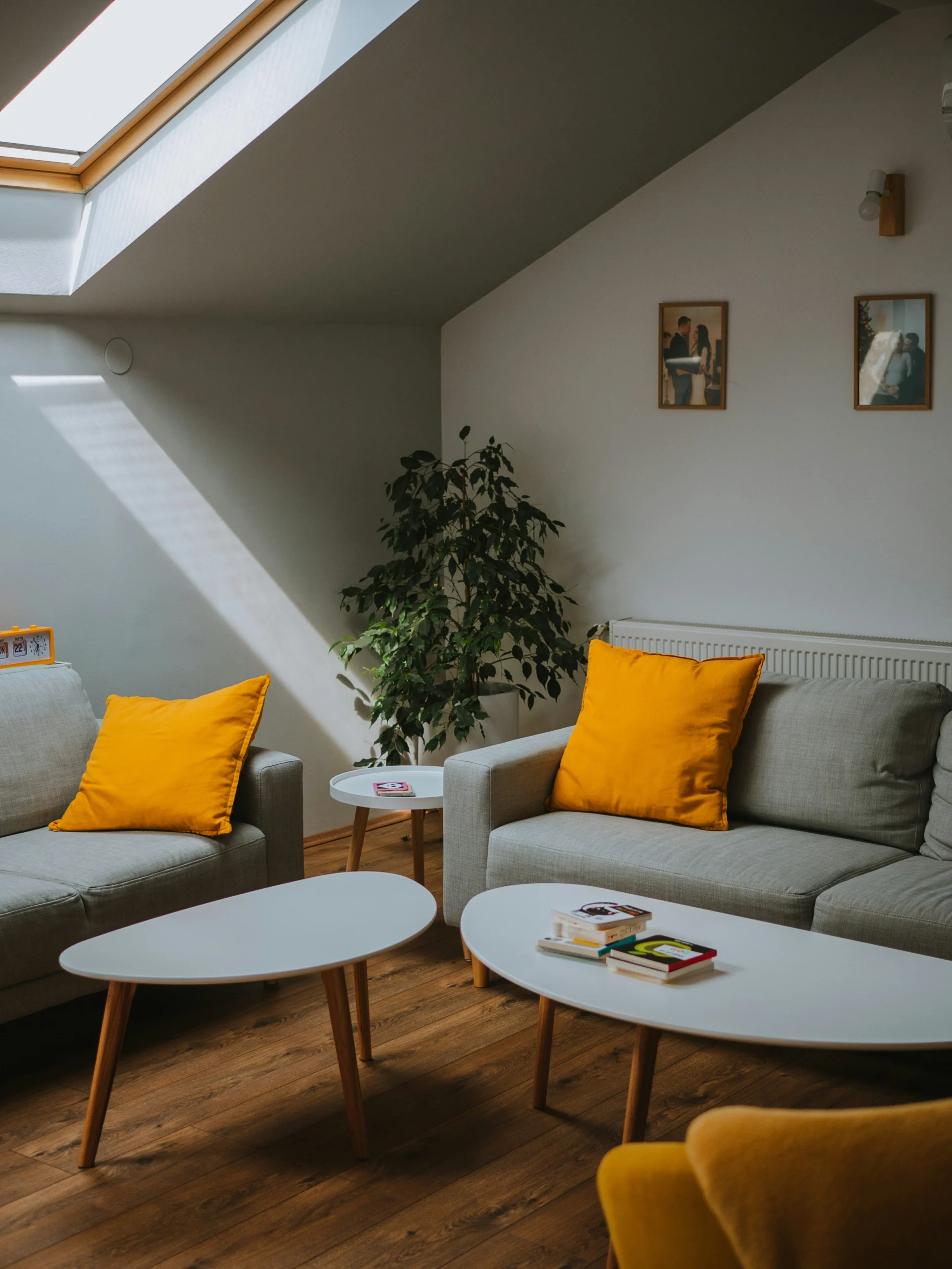 The striking contrast between deep charcoal and vibrant mustard yellow energizes any living room. Charcoal’s dark, grounding presence is perfectly offset by mustard’s cheerful brightness, creating a dynamic yet balanced environment that feels both modern and inviting.