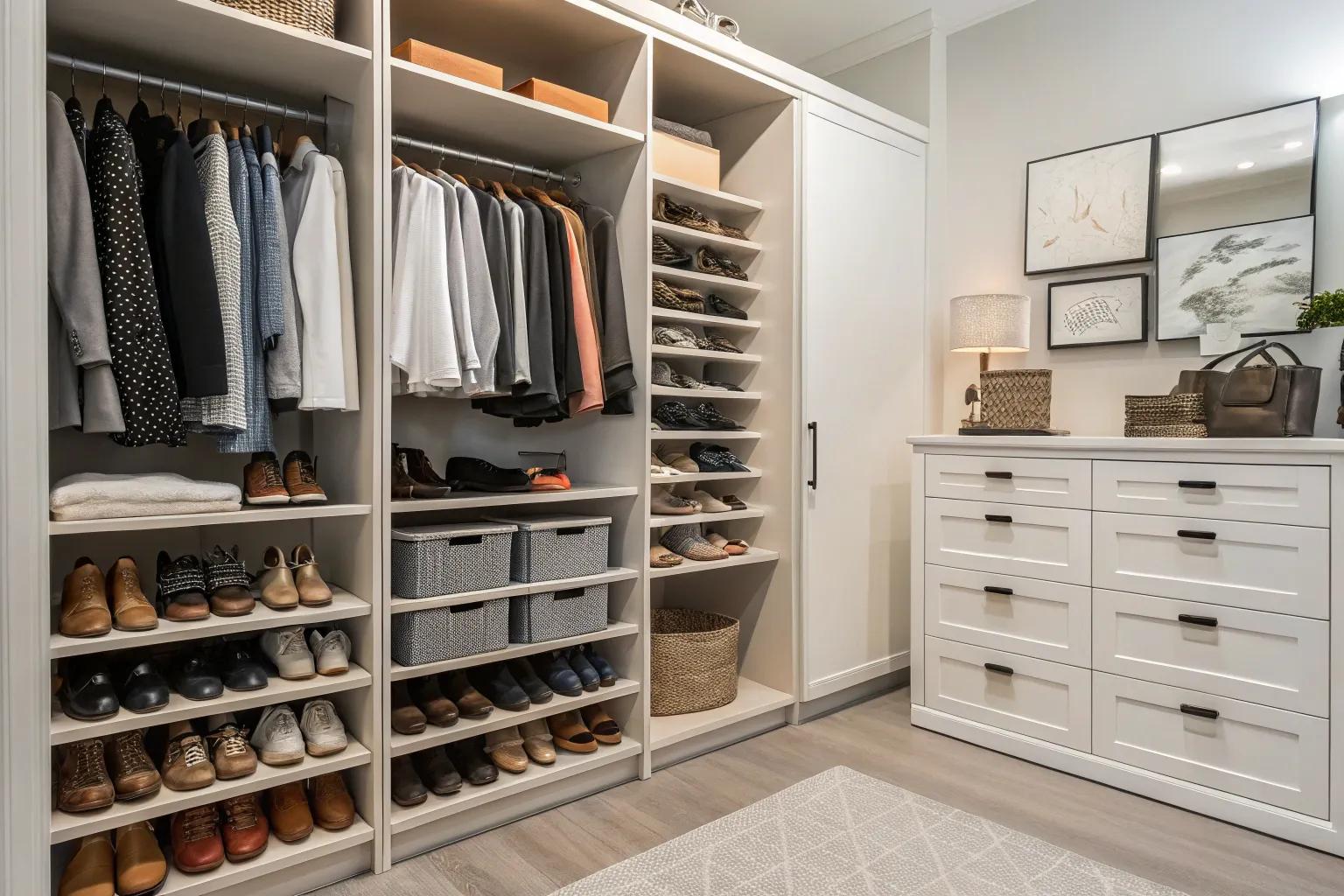 - Adjustable Closet Shelving Units: Flexible shelving that adapts to your storage needs and shoe sizes.