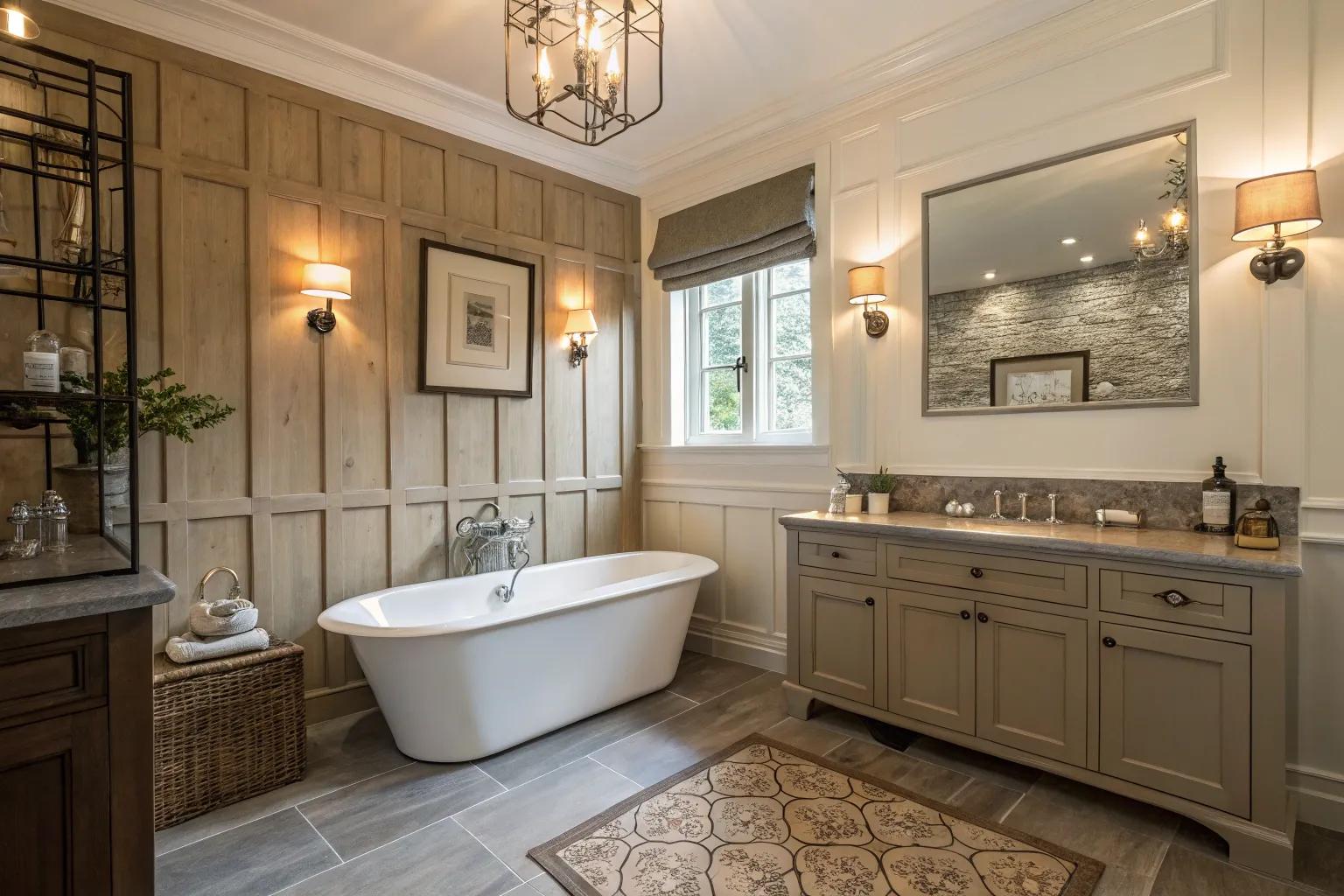 Pairing wallpaper with wall panels offers a unique way to introduce patterns and textures without overwhelming the room. This method allows for a highly personalized bathroom design.