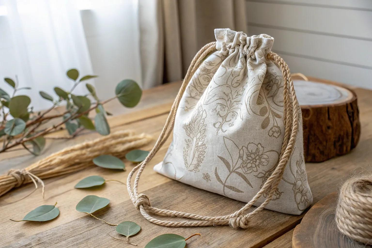 For a natural, earthy vibe, consider crafting a burlap drawstring bag. These are perfect for rustic-themed events or as charming storage solutions.