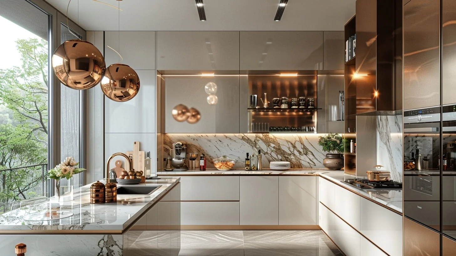 Integrating smart technology elevates kitchens into futuristic, luxurious spaces. Features like touchscreen refrigerators, motion-activated faucets, and voice-controlled lighting systems enhance convenience and style. A neutral palette of whites, grays, and metallics complements the sleek, high-tech vibe.