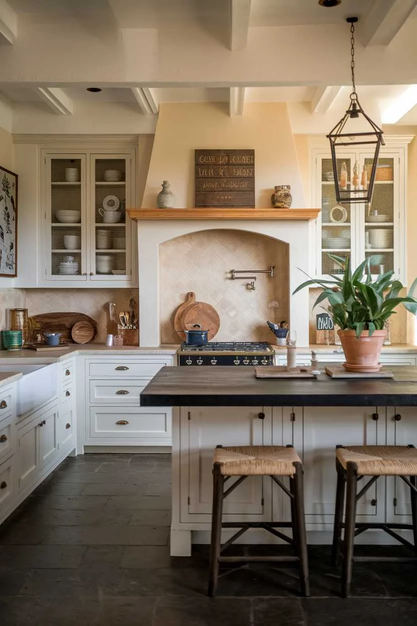 This design approach embraces authentic materials such as terracotta, natural wood, and artisanal hand-painted tiles, crafting a kitchen environment that feels both cozy and welcoming.