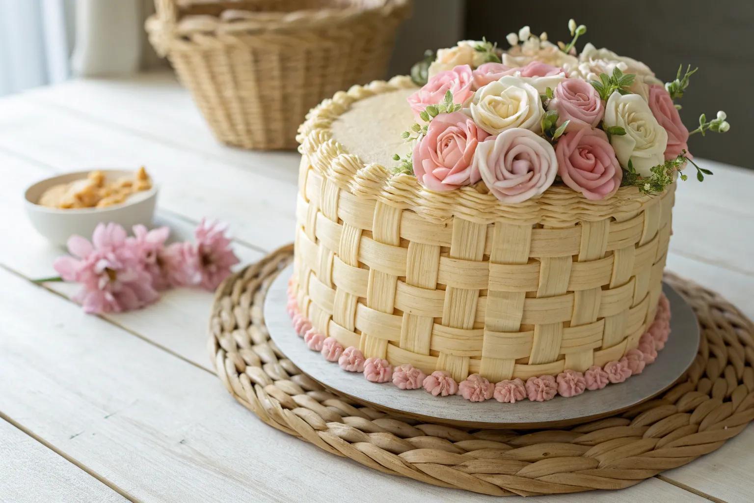 Break away from tradition by experimenting with geometric motifs, adding a fresh, modern edge to your basket cake creations.