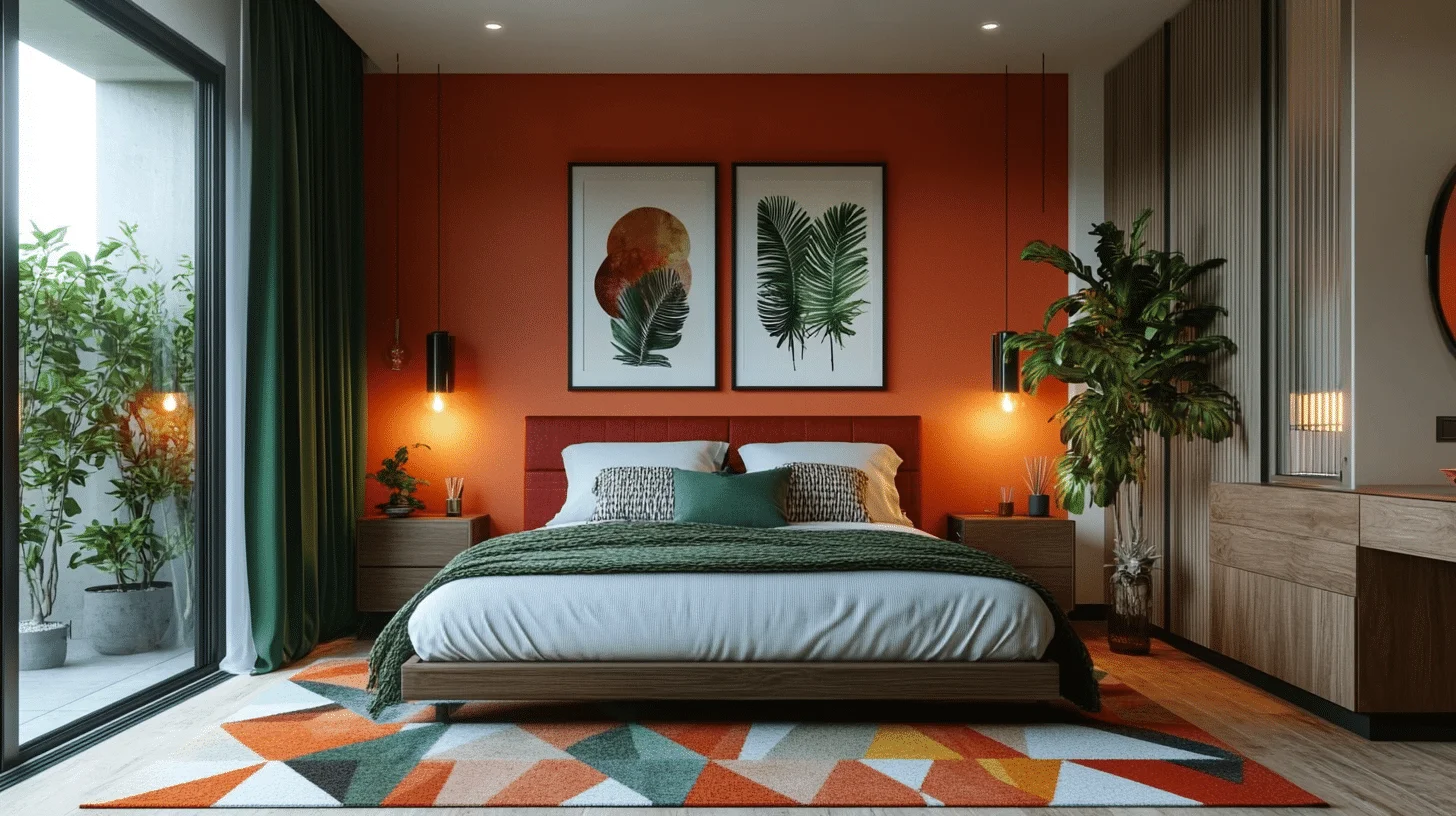 6. Tropical Oasis: Green and Terracotta Bedroom Inspiration