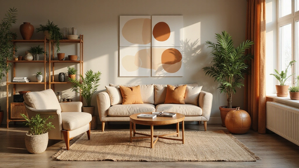 Enhance this look with a reclaimed wood coffee table, which adds character and a hint of industrial chic. Pair terracotta with creamy whites to brighten the deeper tones, achieving a balanced and inviting aesthetic.