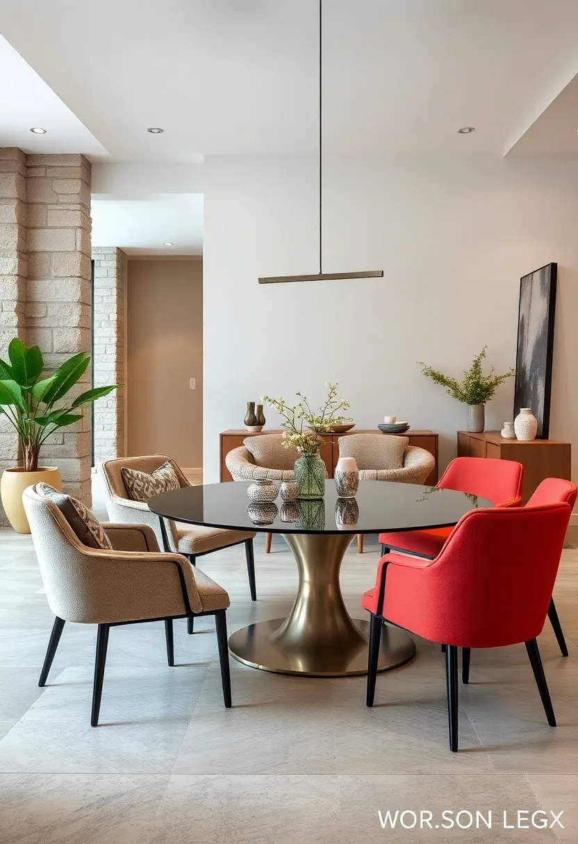 High-Back Velvet Chair with Chrome Accents: Luxurious textures meet contemporary edge for elevated dining