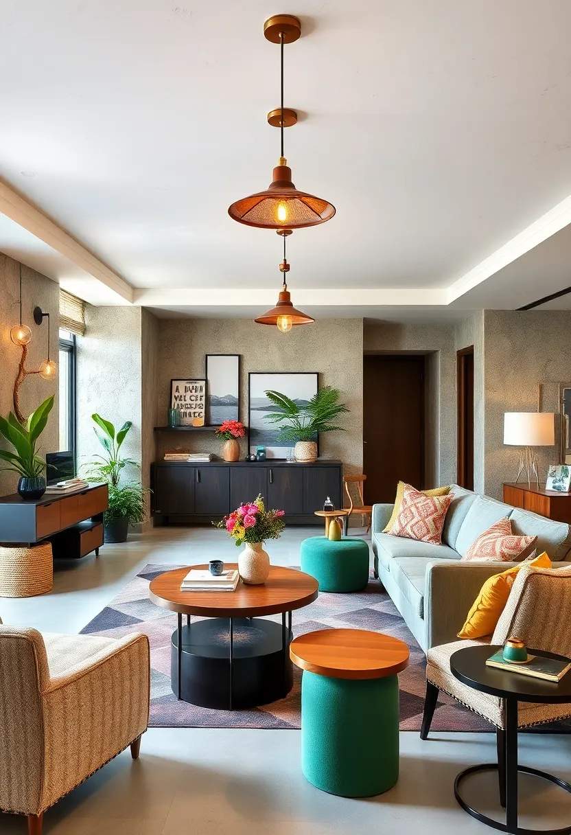 Consider pairing a tripod mid-century lamp with a sleek arc lamp and a quirky patterned shade to craft depth and movement. Balance boldness with subtlety by combining statement pieces and understated favorites to avoid visual chaos. Introduce these accents alongside plush cushions, textured throws, and a colorful rug to amplify warmth and comfort. A handy reference for mixing lamp styles could look like this: