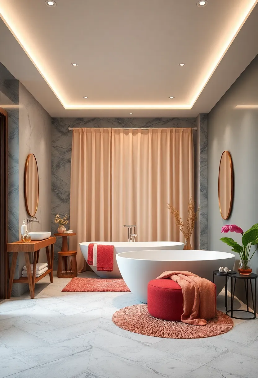 - Texture Play: Plush towels and woven rugs add depth and tactile intrigue.