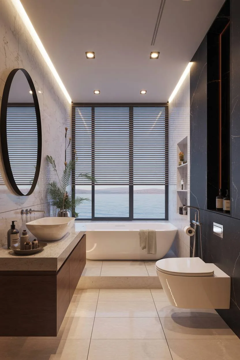 Modern bathroom designs focus on streamlined forms, high-quality finishes, and layouts that maximize both space and natural illumination.