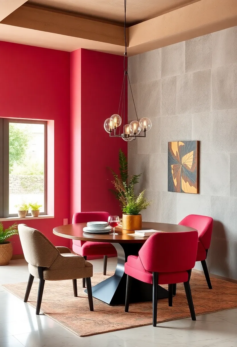 Transform a compact dining nook by introducing a vibrant geometric rug that instantly commands attention without overwhelming the space. Opt for patterns featuring contrasting shapes and bold colors like navy, gold, or charcoal to create visual intrigue. This foundation anchors the dining set and defines the area distinctly, making it feel intentional and inviting. The rug’s structured design offers a modern edge, balancing cozy with contemporary while amplifying your corner’s personality.
