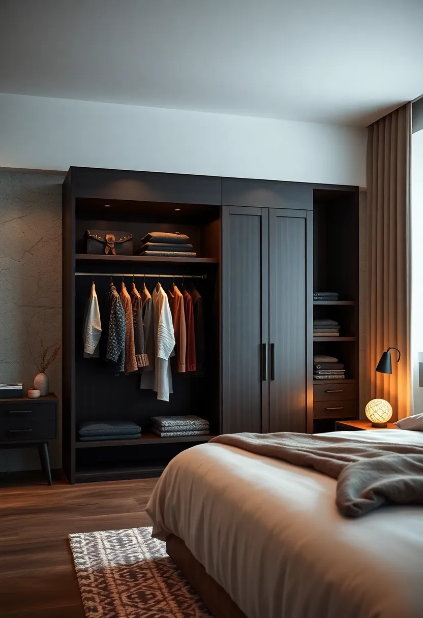 Loft-Style Wardrobe with Open Shelves and Hanging Space for An Urban Bedroom Vibe