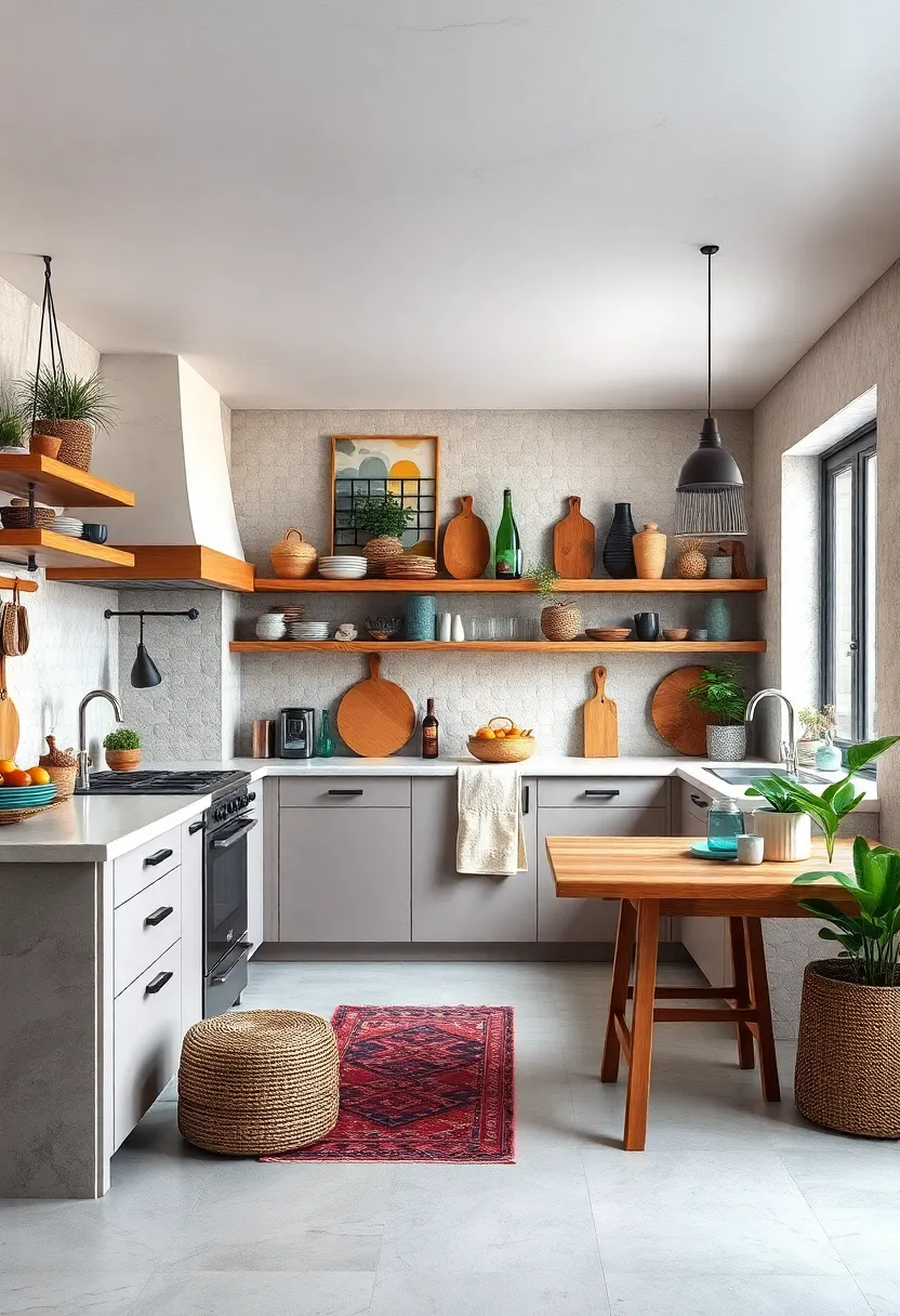 By thoughtfully integrating these wooden elements, your kitchen not only echoes bohemian freedom but also radiates the cozy, welcoming atmosphere you crave every day.
