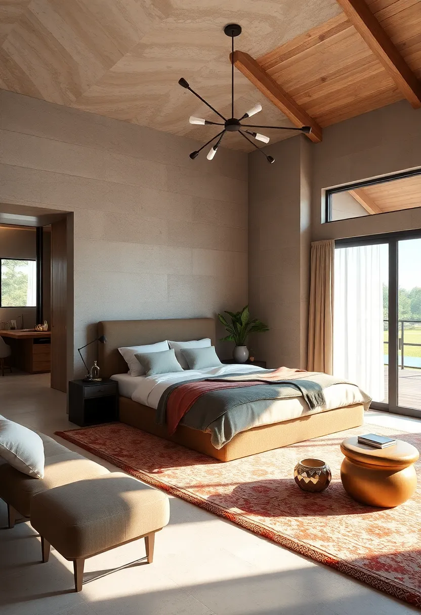 Drawing attention to your sleeping area can transform the entire ambiance of your master bedroom. A bold, textured rug positioned beneath the bed instantly anchors the space, creating a cozy nook that invites relaxation. Think rich, tactile materials like shaggy wool, woven jute, or plush velvet—each bringing a different dimension of warmth and interest. Not only dose the texture elevate the visual appeal, but it also provides a soft, cushioned surface to step onto, making those early mornings and late-night routines feel luxurious.