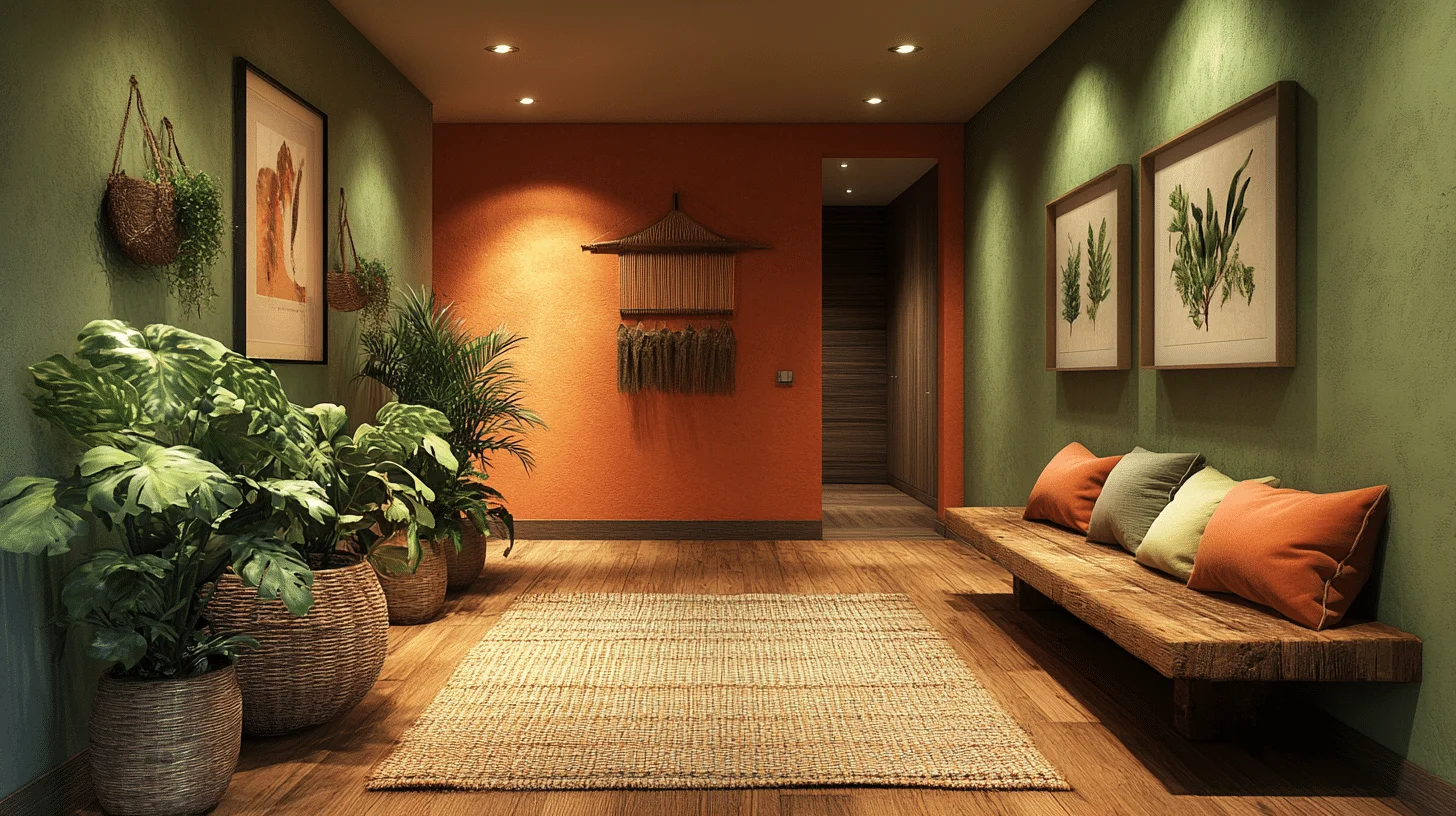 Craft a tranquil entryway by painting your walls in soothing earthy shades like olive green or burnt sienna. These cost-effective colors evoke a natural serenity and pair beautifully with wooden or stone accents, creating a rustic yet peaceful environment.