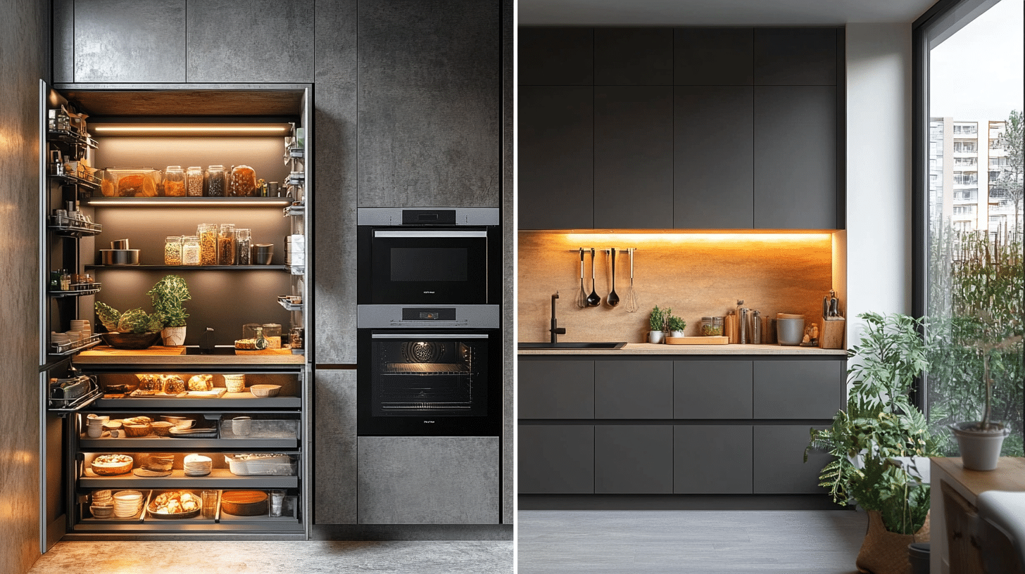 Optimize limited kitchen areas by utilizing vertical storage units and foldable countertops. Clean lines paired with recessed lighting-often found at thrift stores-maintain a modern and spacious feel. This compact design maximizes functionality without sacrificing style or budget.