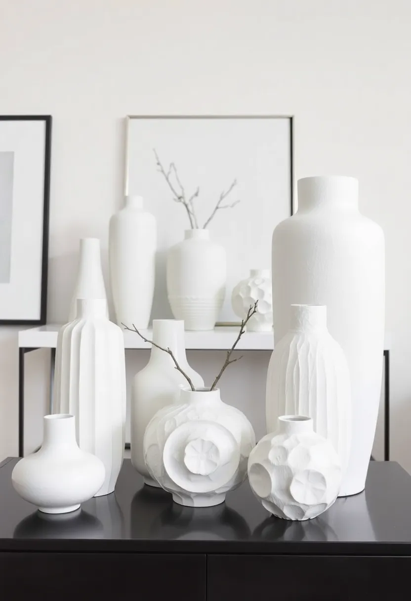 Monochromatic decor not only simplifies your space but also elevates its aesthetic appeal. Consider incorporating textured vases or abstract sculptures in varying shades of a single color to create a cohesive look throughout the room. For instance, a collection of white ceramic vases of different shapes and sizes can add depth to your coffee table or shelf, while maintaining a clean and sophisticated vibe. The variations in texture from matte to glossy will keep the eye engaged without overwhelming the senses.
