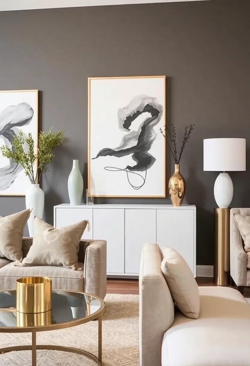Pair these artistic displays with neutral or matching colored furniture for a seamless flow. metallic accents in the same tonal family can further enhance the monochromatic theme while injecting a hint of glamour. Create a dedicated display area, perhaps through a minimalist shelf or a chic console table, to feature these artistic pieces prominently. The effect is a stylish, unified environment that reflects both modernity and elegance, making your living room a tranquil yet inspired retreat.