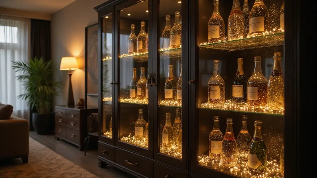 Optimizing the lighting around your smoked-glass cabinet is key to maximizing its visual impact. Gentle, ambient illumination can accentuate the smoky glass, casting a warm radiance that naturally draws attention. Installing LED strip lights or focused spotlights inside the cabinet can beautifully highlight your champagne collection, turning it into a dazzling showcase. This lighting strategy not only celebrates your passion for bubbly but also adds depth and sophistication to your decor.