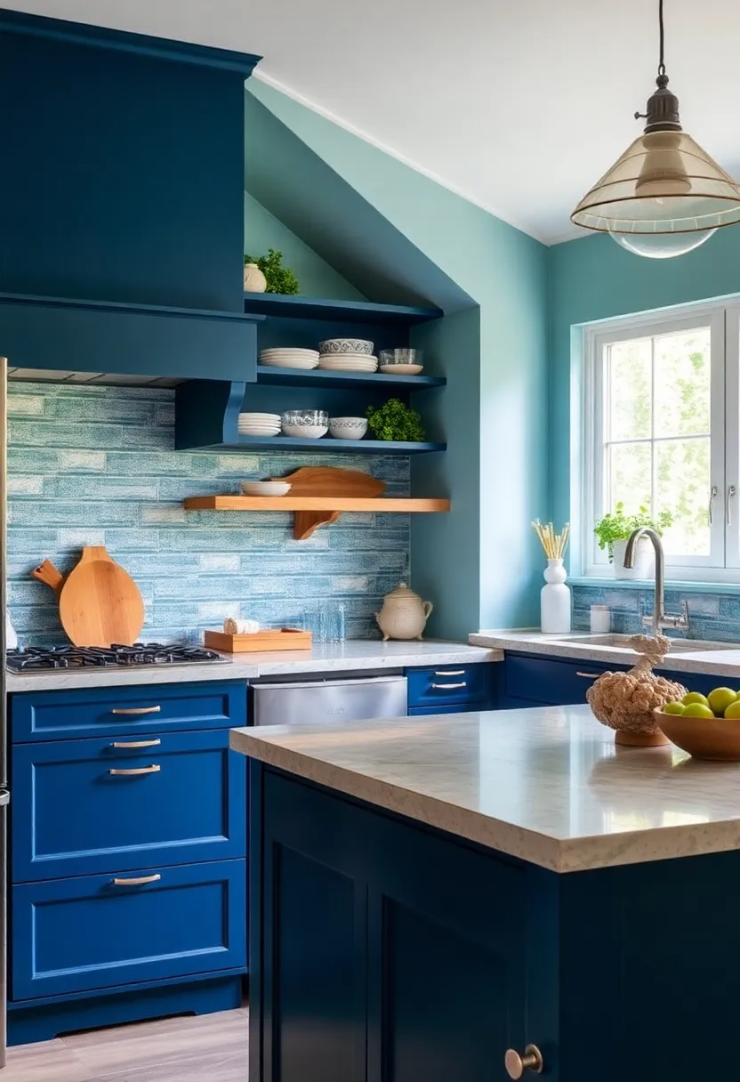 Enhance the overall aesthetic of your kitchen by incorporating elements inspired by the ocean. Think about adding seashell decorations, glass tiles reminiscent of water, or even a tabletop fountain for a refreshing touch. Embrace the fluidity and tranquility of the sea to create a kitchen that exudes a sense of calm and relaxation. Let the soothing shades of blue transport you to a coastal paradise right in the heart of your home.