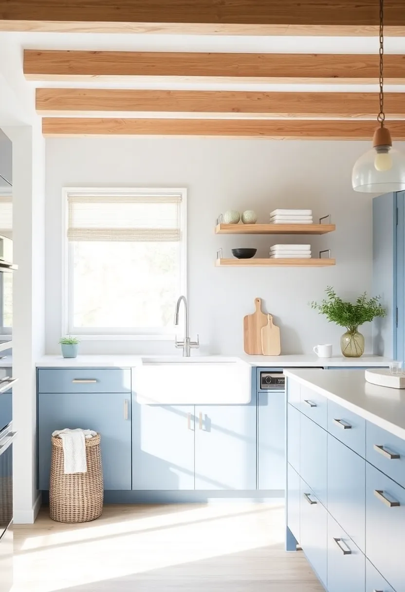 Imagine walking into a kitchen with sky blue cabinets that evoke a sense of serenity and openness. The light and airy feel of this hue can make your kitchen feel bright and welcoming. Pairing sky blue cabinets with white countertops and gold hardware can create a chic and modern aesthetic.