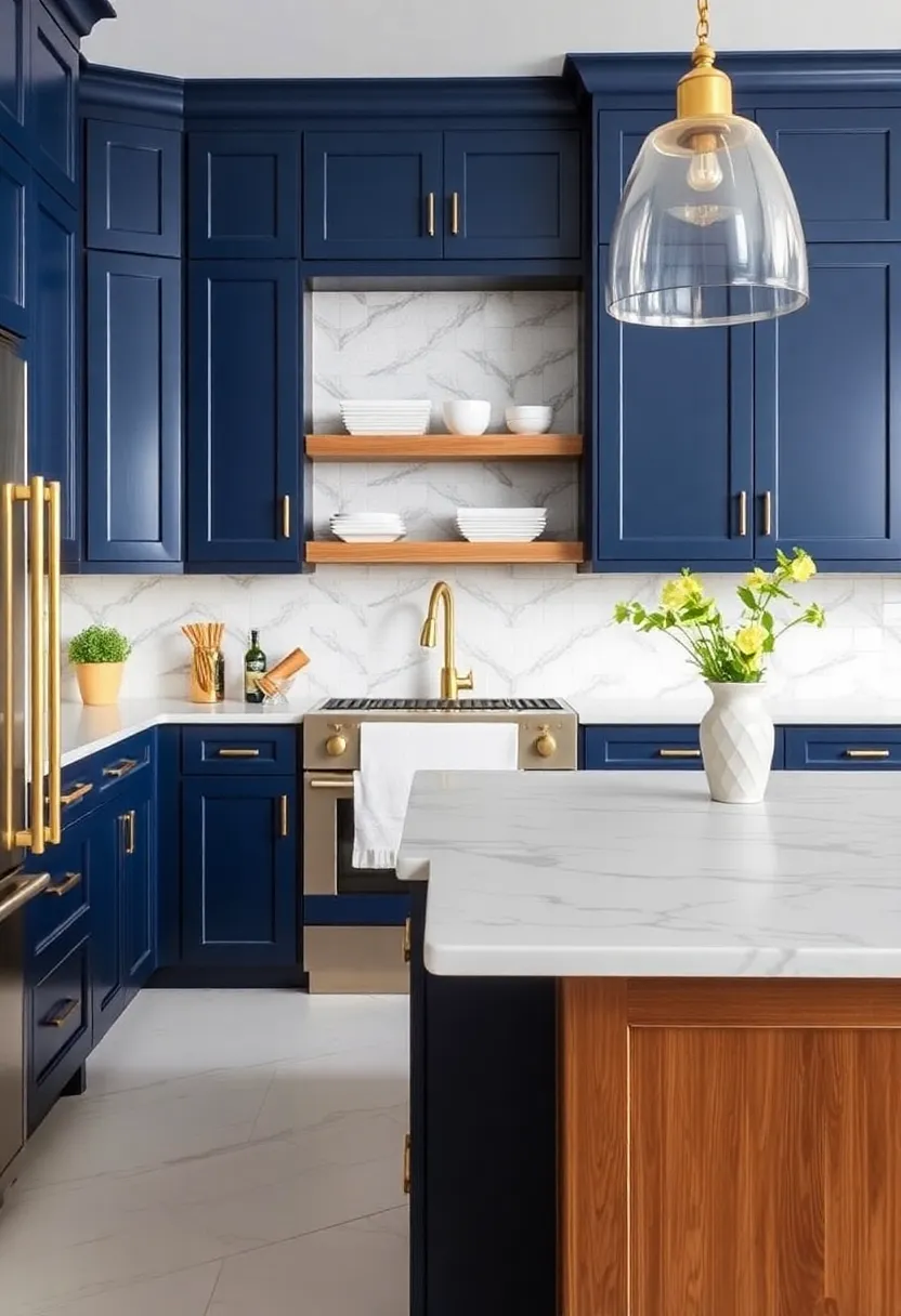 For those looking to make a bold statement, consider incorporating a blue kitchen island into your design. A navy blue island can serve as a focal point in the room, adding a touch of sophistication and drama to the space. Pairing the island with gold or brass hardware and light wood flooring can create a modern and luxurious aesthetic that is sure to impress.