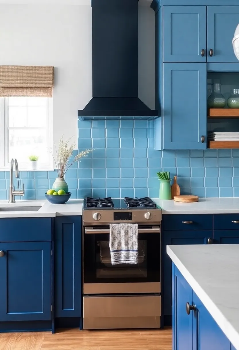 Another way to infuse blue into your kitchen design is by adding a blue backsplash. Whether you choose a bold cobalt blue tile or a subtle aqua glass backsplash, this element can add a pop of color and visual interest to your space. Pairing a blue backsplash with white cabinets and countertops creates a crisp, clean look that is both timeless and on-trend.
