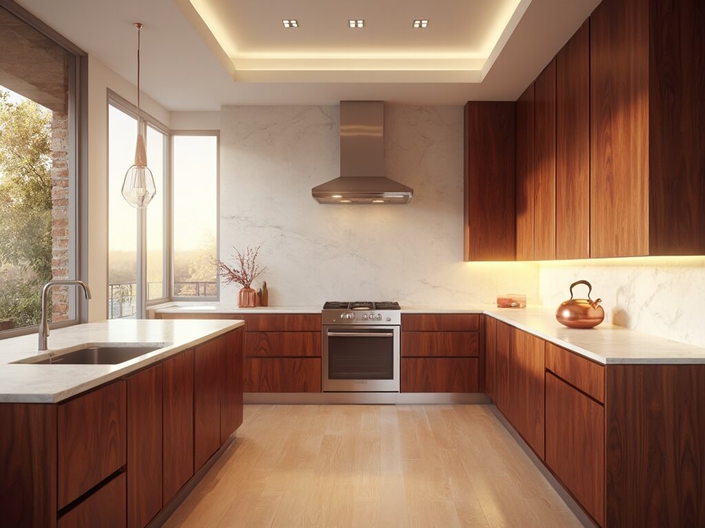 • Incorporate light-colored countertops such as white or gray quartz for striking contrast (quartz countertops)