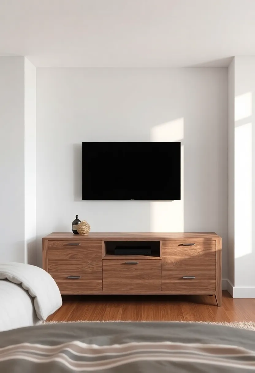 When selecting a TV unit that serves as a stunning focal point in your rustic bedroom, consider materials and craftsmanship that resonate with the warmth and homeliness of rustic design. A reclaimed wood unit can bring in that vintage charm, while deep, earthy tones can complement the rest of your interior. Look for features like distressed finishes, decorative carvings, or handcrafted elements that not only enhance the aesthetic but tell a story of their own. Additionally, incorporating storage solutions within the unit can help maintain a tidy space while still showcasing the beauty of rustic decor.