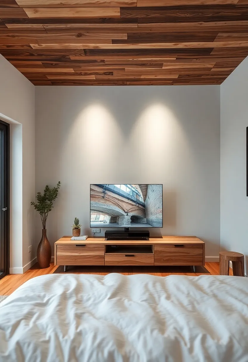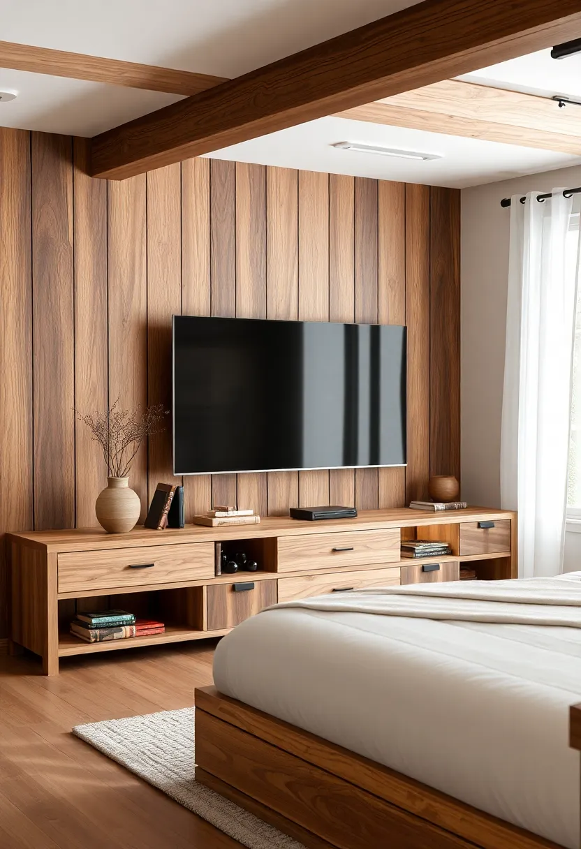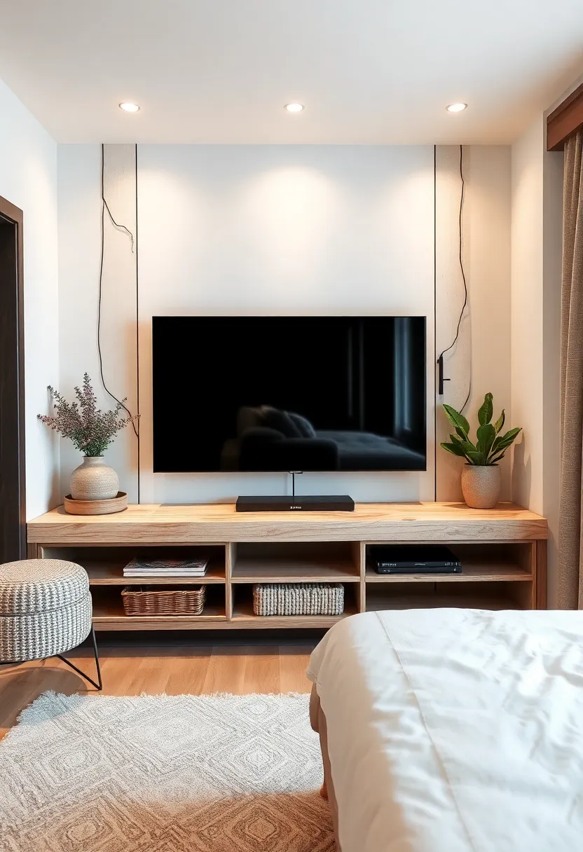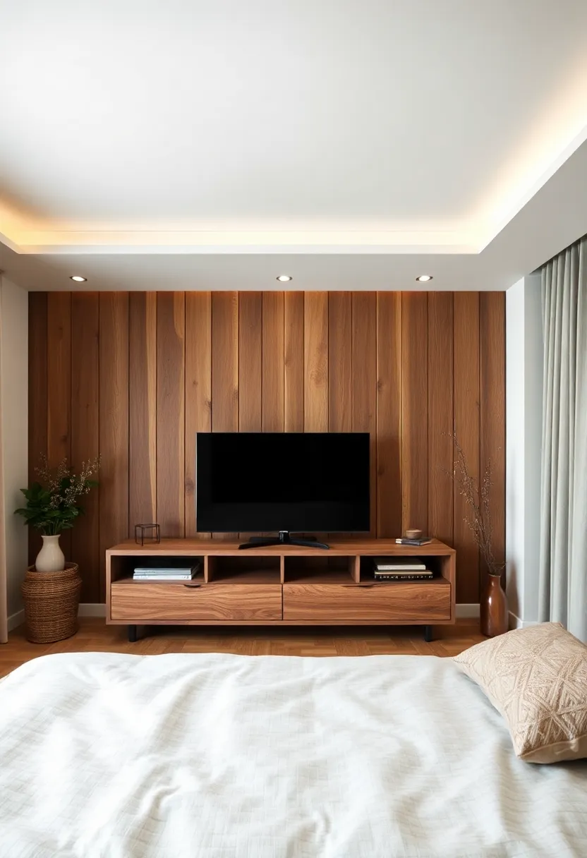 Embracing the charm of rustic aesthetics invites a sense of warmth and nostalgia into any bedroom. Imagine a beautifully crafted TV unit made from reclaimed wood, highlighting its natural imperfections and grain. This addition not only serves a practical purpose but also becomes a focal point that bridges the gap between contemporary minimalism and timeless farmhouse elements. To further enhance this cozy atmosphere, consider incorporating woven baskets or handmade pottery on the shelves, offering both style and functional storage.