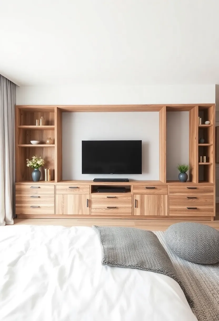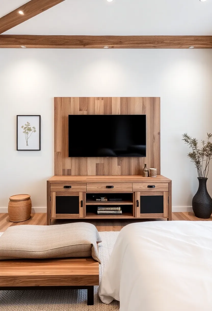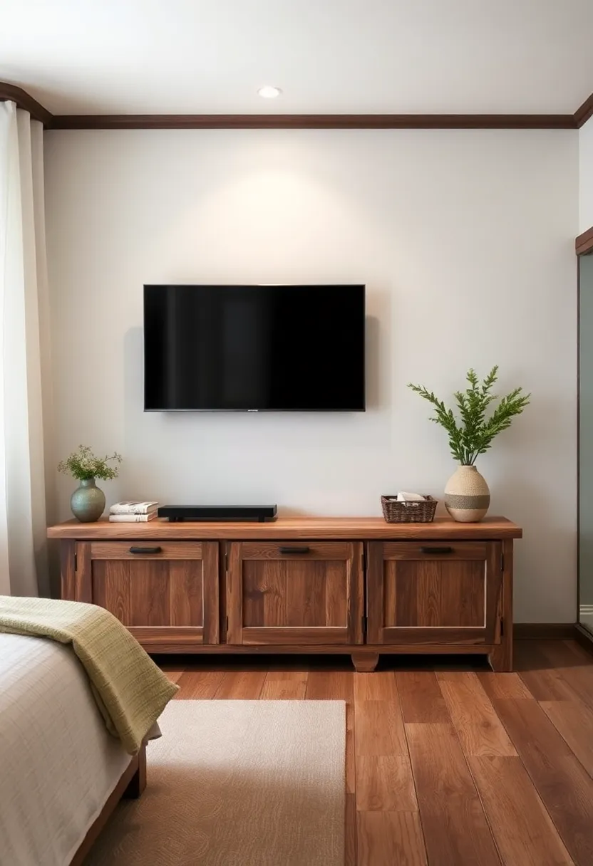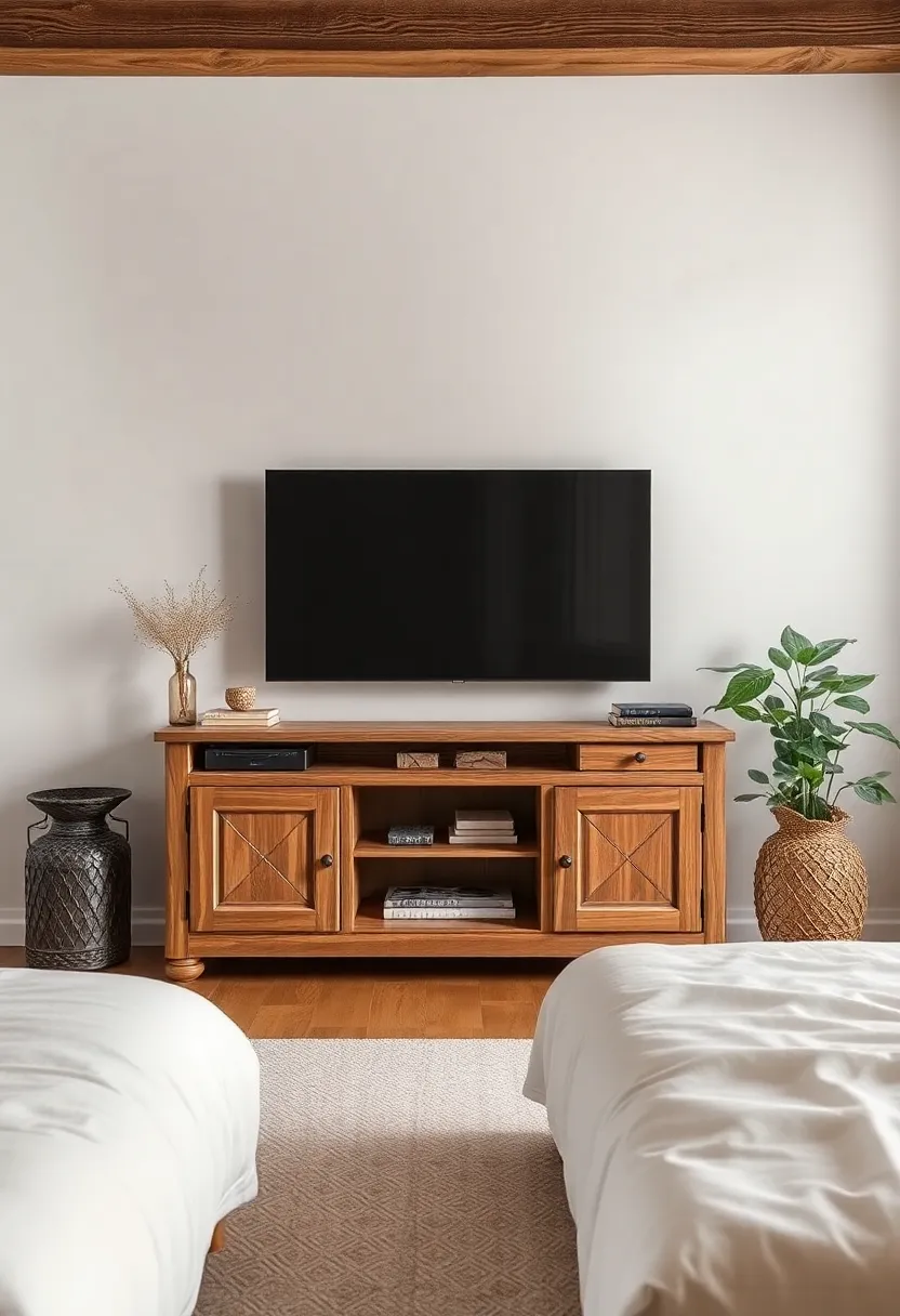 When selecting a TV unit that serves as a stunning focal point in your rustic bedroom, consider materials and craftsmanship that resonate with the warmth and homeliness of rustic design. A reclaimed wood unit can bring in that vintage charm, while deep, earthy tones can complement the rest of your interior. Look for features like distressed finishes, decorative carvings, or handcrafted elements that not only enhance the aesthetic but tell a story of their own. Additionally, incorporating storage solutions within the unit can help maintain a tidy space while still showcasing the beauty of rustic decor.