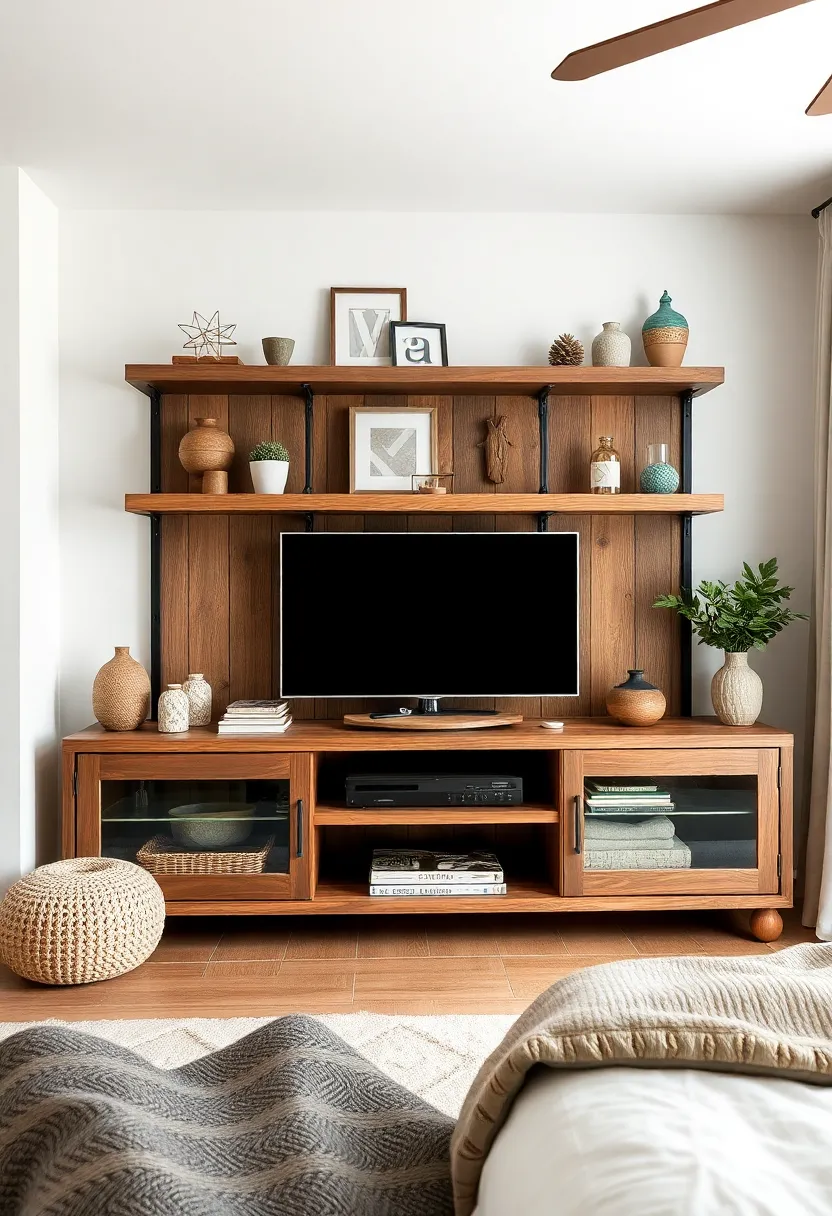 By integrating these artisan elements, the rustic bedroom TV unit becomes more than just a storage solution; it transforms into a curated collection that invites relaxation and personal expression.