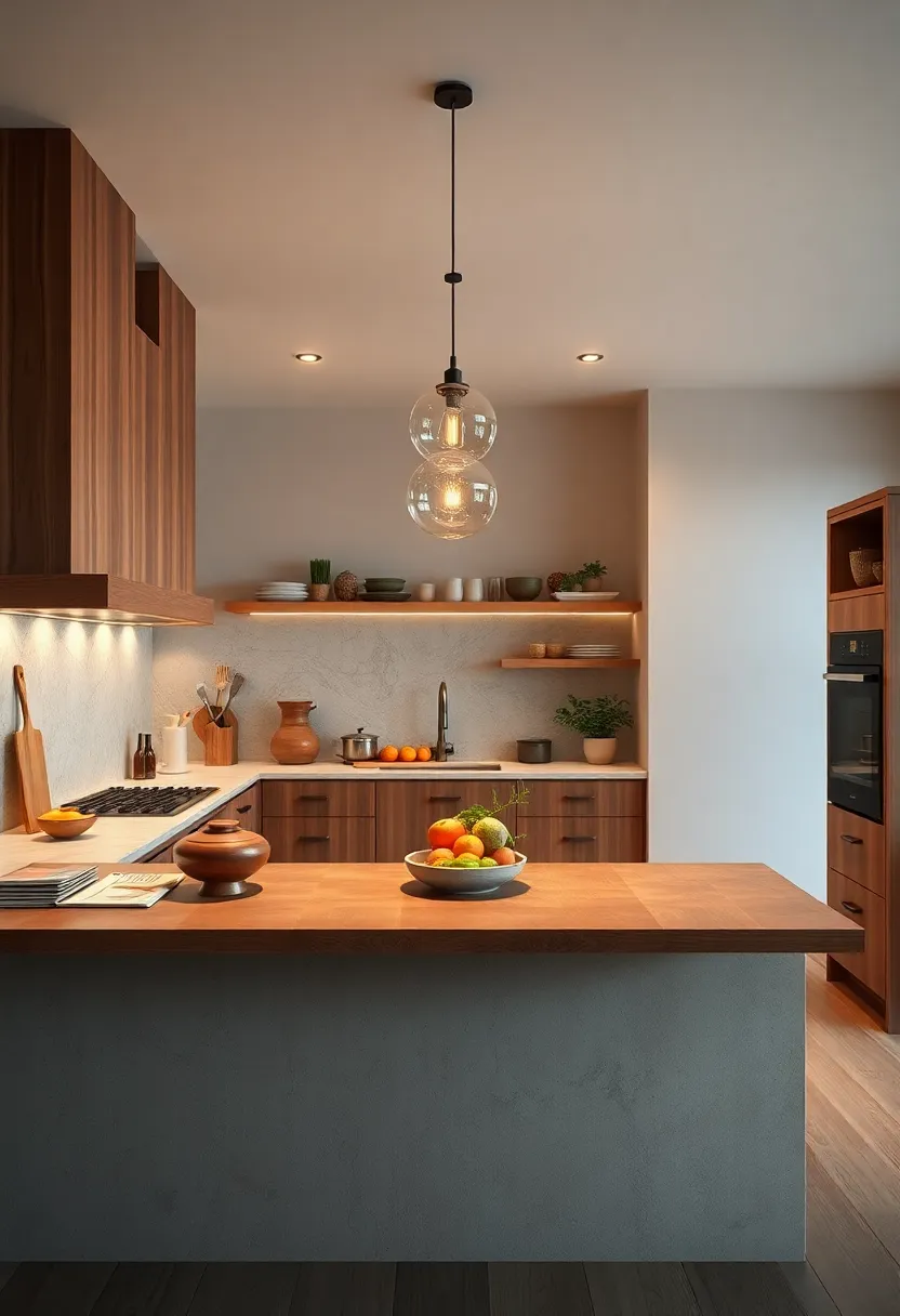 - Natural Materials: Incorporate wood, stone, and bamboo for surfaces and cabinetry