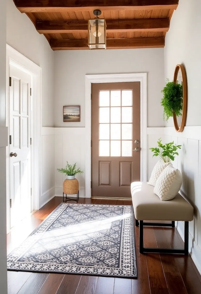 Another way to mix textures is to combine a rustic wooden bench with a metallic coat rack. The natural warmth of the wood will complement the cool shine of the metal, creating a visually appealing juxtaposition that adds character to your entryway. Play around with different combinations to find the perfect balance of textures for your space.