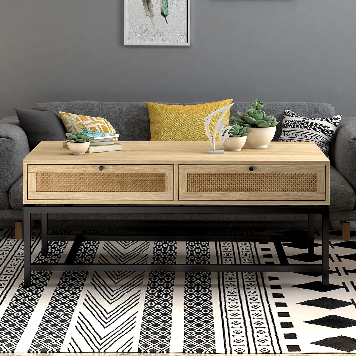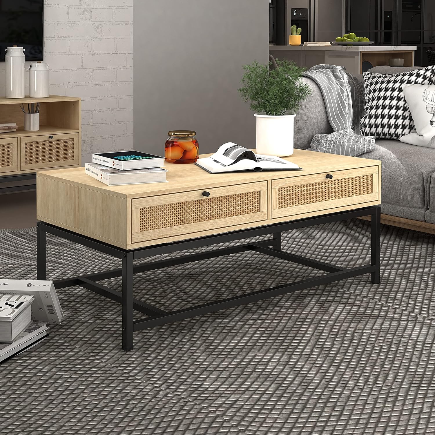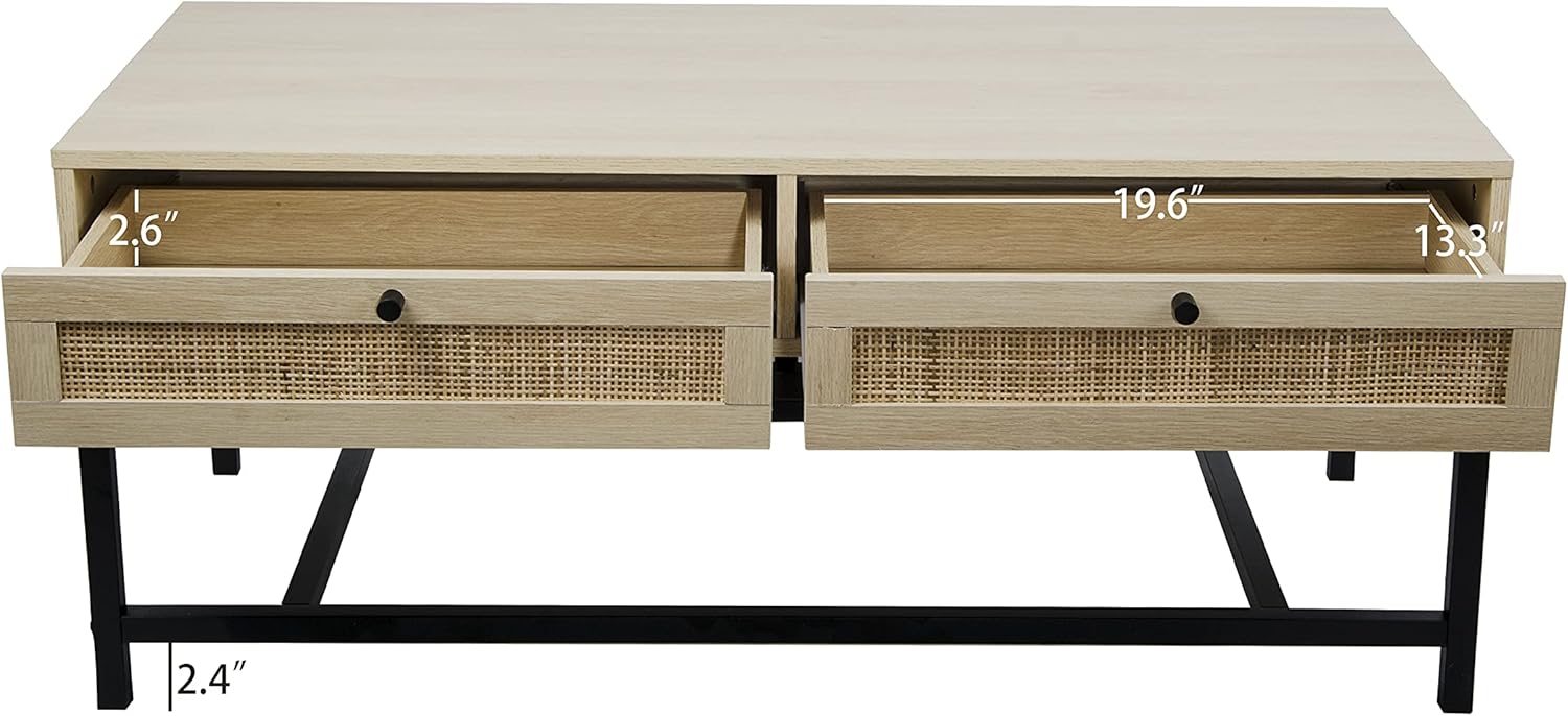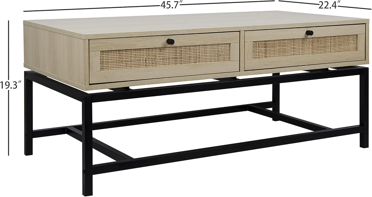 The two rattan drawers incorporated into this coffee table truly transform our living area by offering seamless storage without compromising on style.Made with natural rattan woven ​into each drawer front and equipped with sturdy metal pulls, these drawers not only blend perfectly with the MDF tabletop ‍and metal frame but also add a warm, rustic texture to the room. They provide a clever ‌solution to keep everyday essentials like remote controls,magazines,and coasters tucked away⁤ yet easily accessible.This helps maintain ‍a ‍clean, clutter-free environment that feels both ‍organized and welcoming.