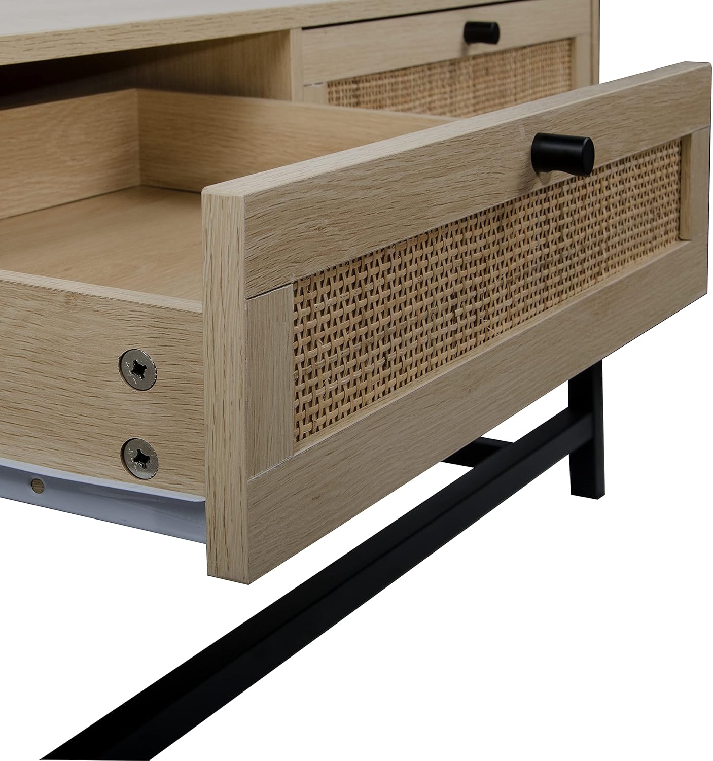 After spending‌ considerable time with this piece, ⁤we appreciate how seamlessly ⁢it blends modern minimalism with ⁤rustic​ charm. The natural rattan accents enrich the ⁣aesthetic without overpowering the sleek⁤ MDF⁣ tabletop⁤ and‍ sturdy metal frame. The spacious⁣ rectangular surface gives ample ‍room for⁣ display or practical ‍use, whether​ it’s ‍for‍ a centerpiece or daily essentials like coasters ‍and cups. The ⁤two built-in ‌drawers are a standout feature, providing generous⁣ storage that helps keep living ⁣spaces clutter-free. ⁤They glide smoothly and highlight a thoughtful design that balances form and ​function.