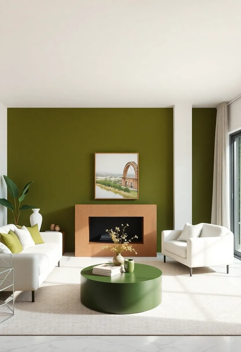 - Accent Walls: Choose one wall painted in olive green to serve as a focal point while keeping the remaining walls a soft white, allowing the green to pop beautifully without overwhelming the space.