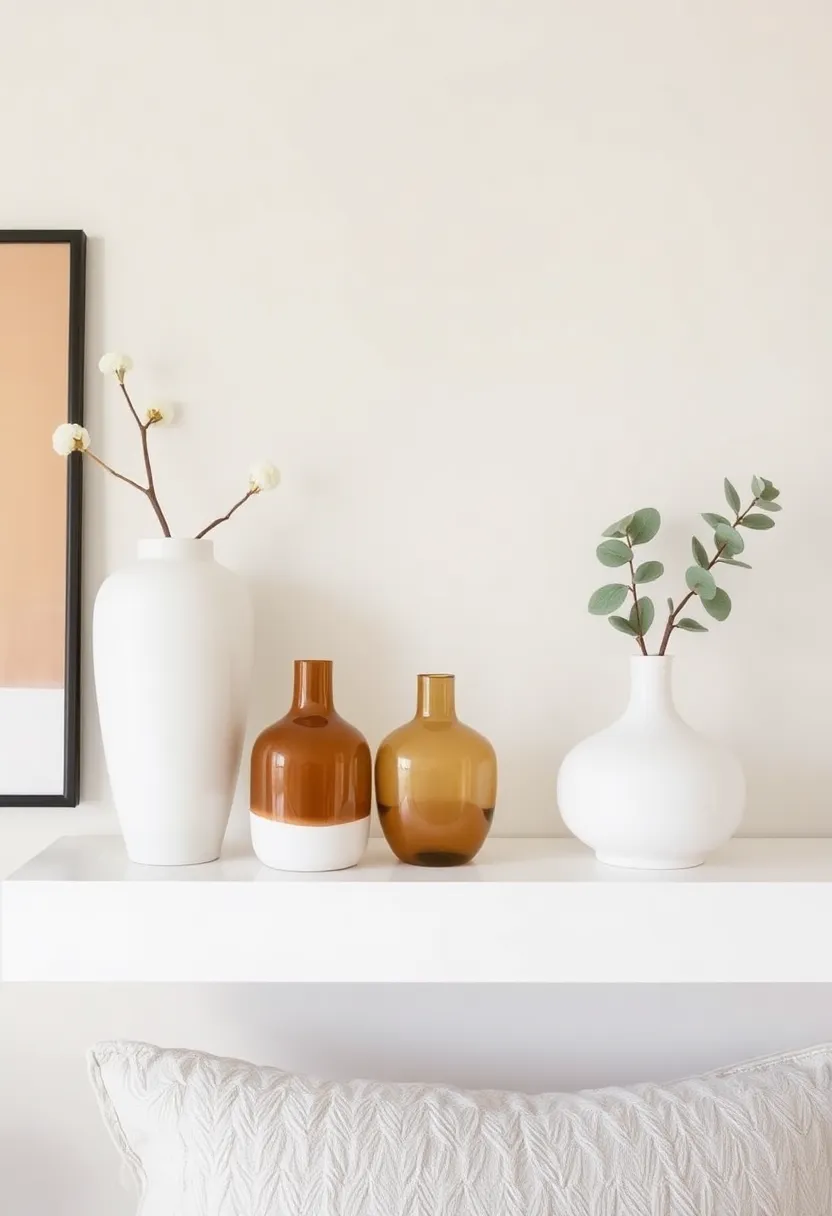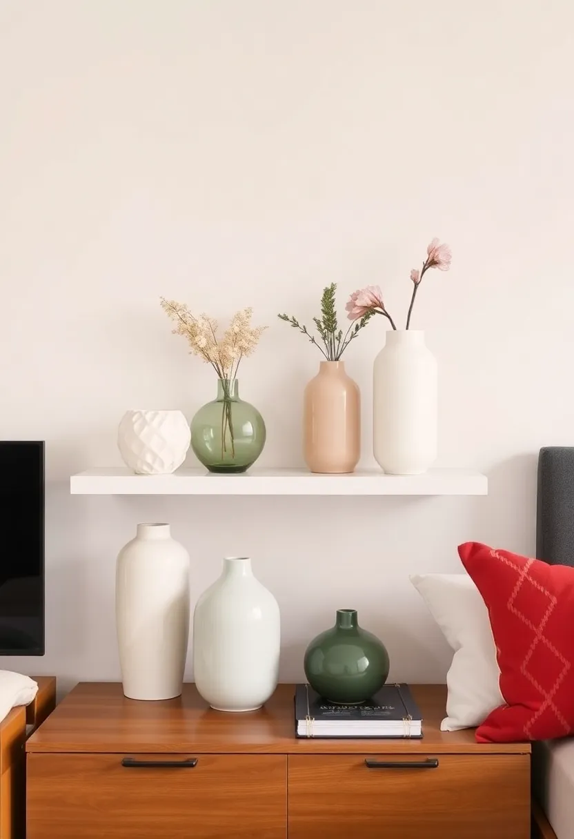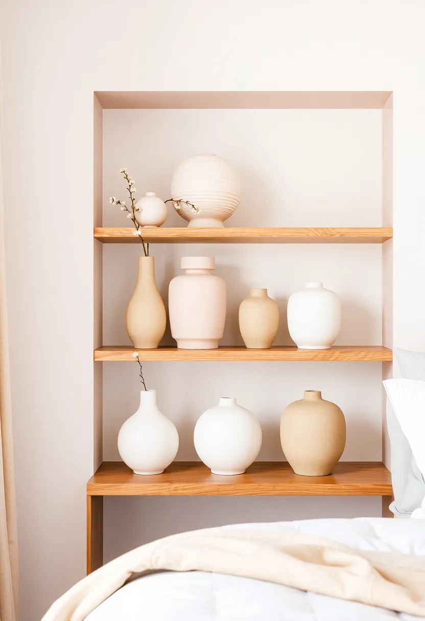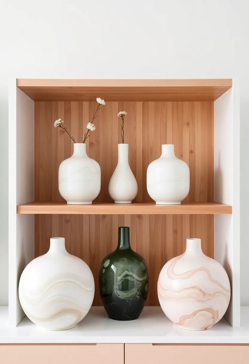 - Textural Contrast: Mix smooth ceramic vases with textured ones to add depth to your shelf.