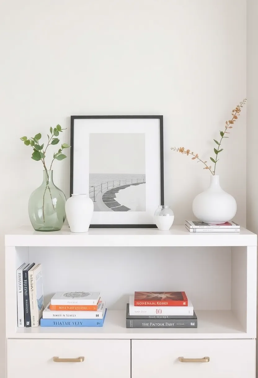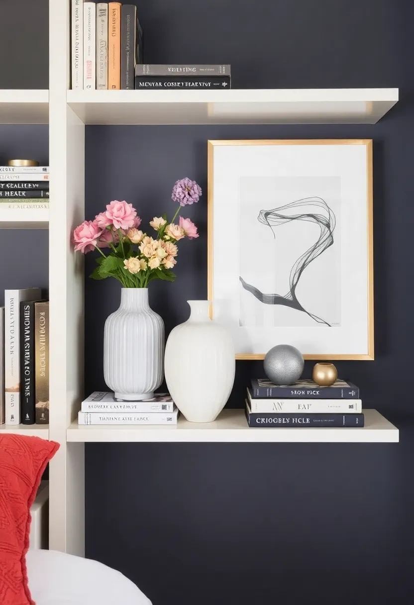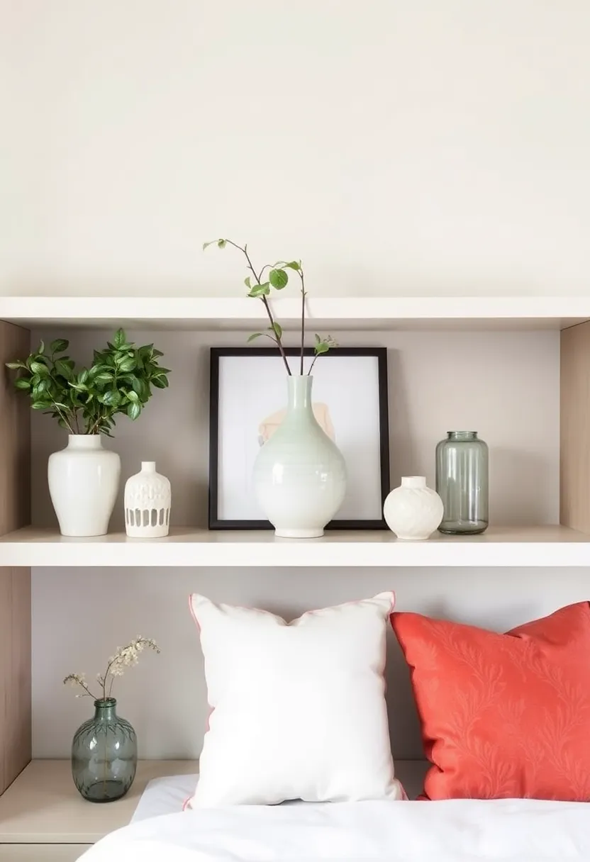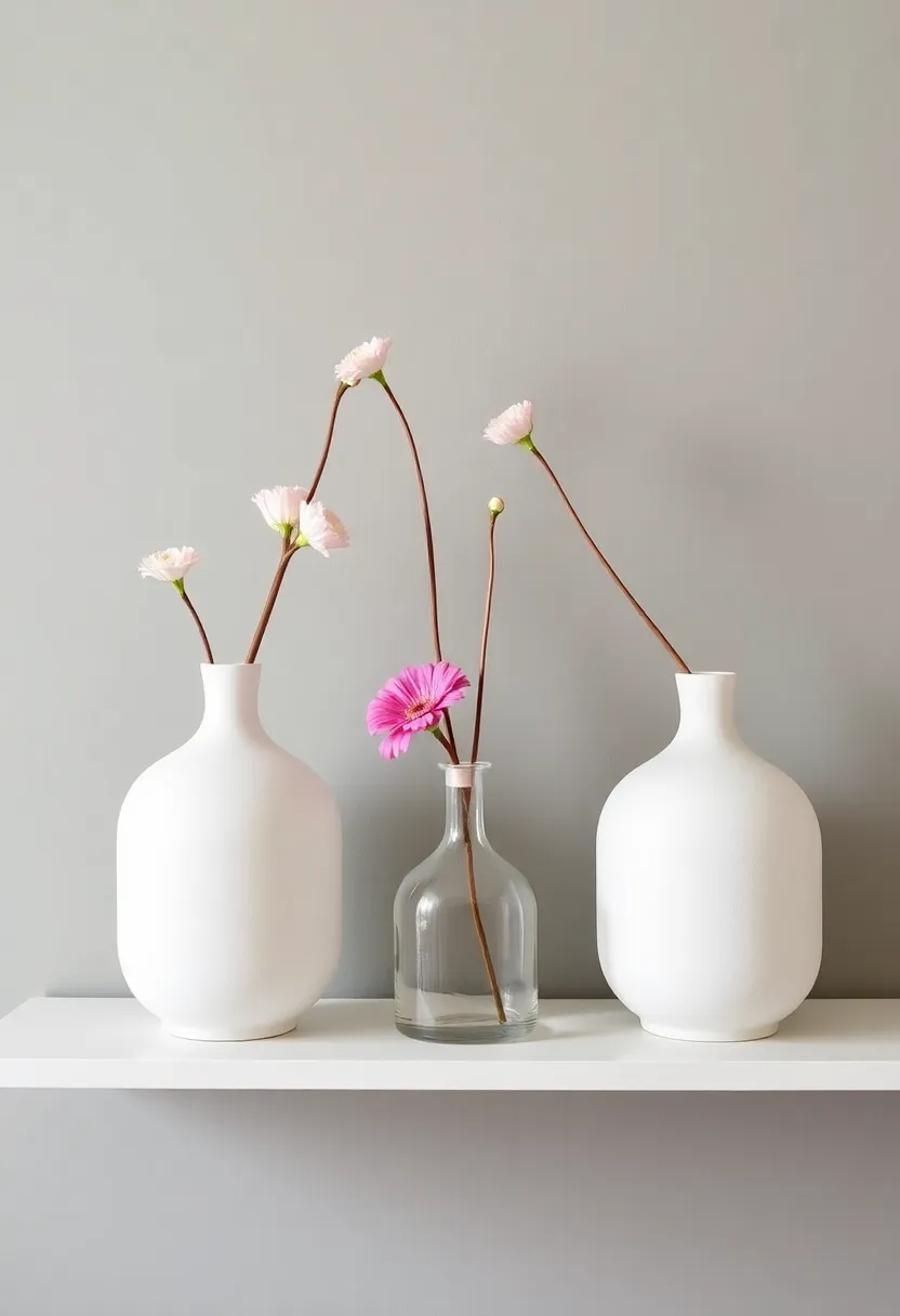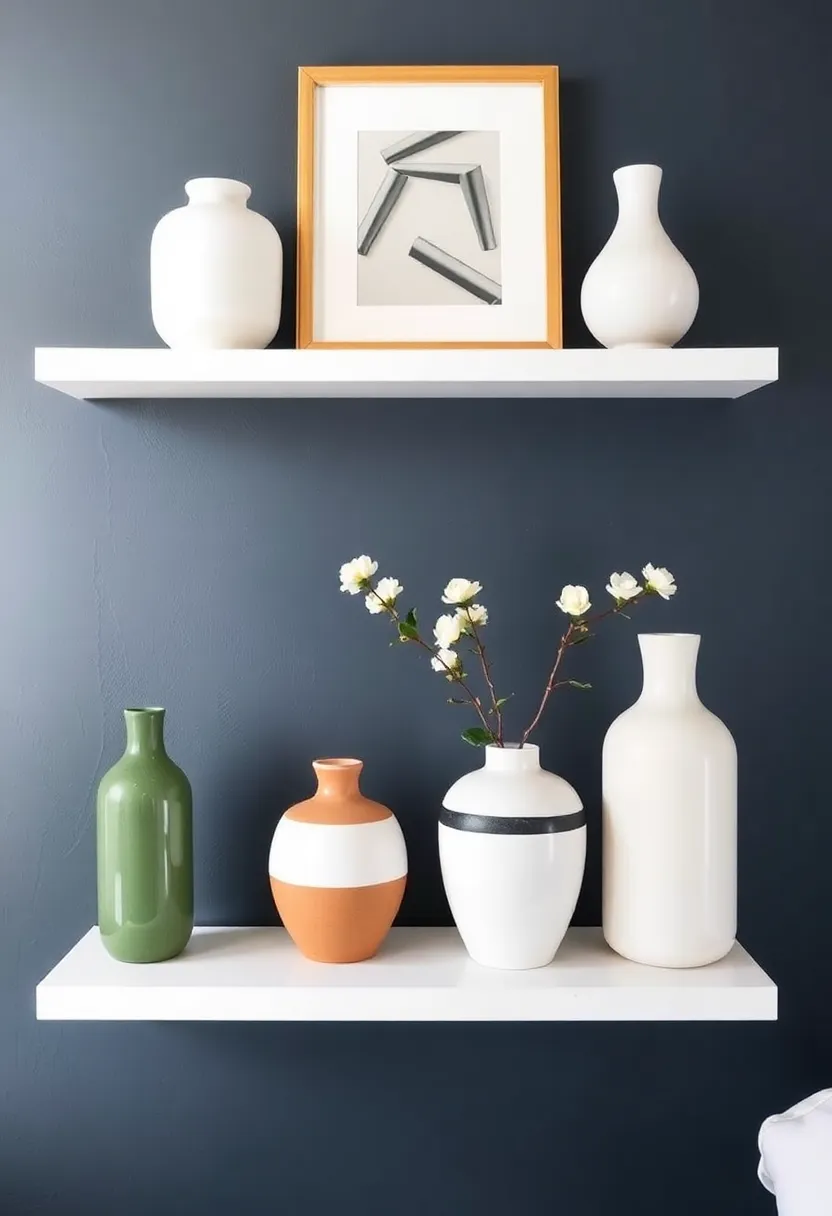 - Textural Contrast: Mix smooth ceramic vases with textured ones to add depth to your shelf.