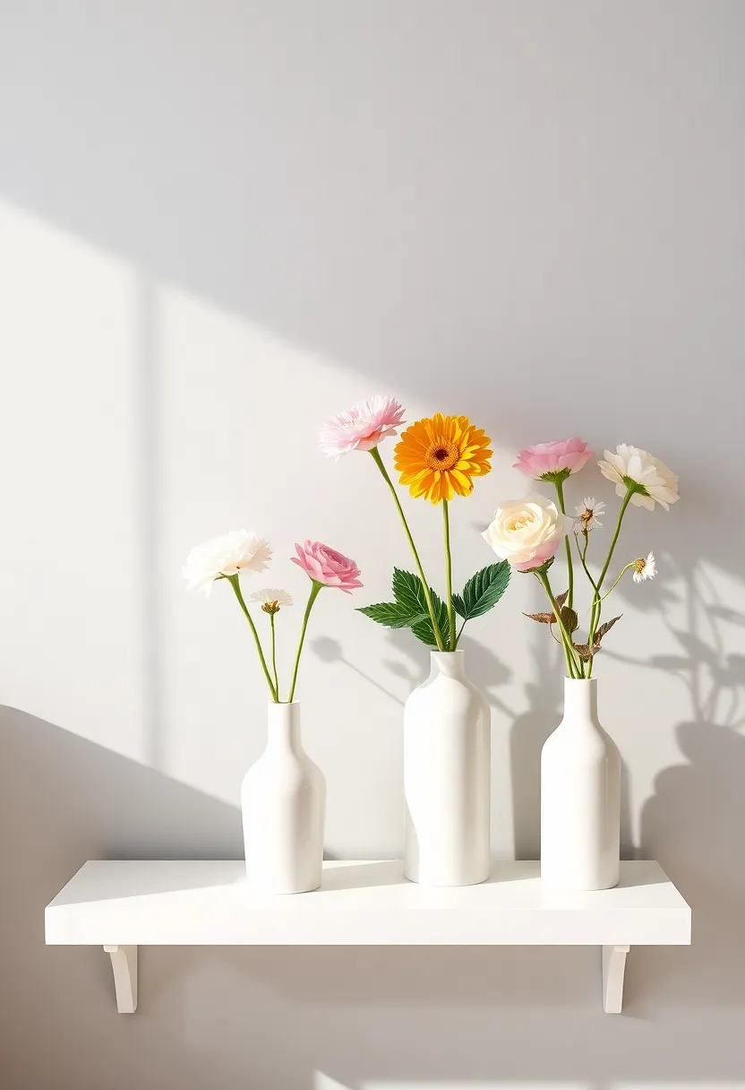 Additionally, consider the placement of your bouquets. Changing their position on the shelf can significantly impact the overall vibe. For instance, move a bright bouquet to a corner that previously felt dull or reposition a minimalist vase to a more central spot for added visual interest. Feel free to take inspiration from Pottery Barn for stylish arrangement ideas and accessories. You could also create a small rotation schedule to keep things fresh and engaging, ensuring each bouquet is given a moment to shine before being swapped out for something new.