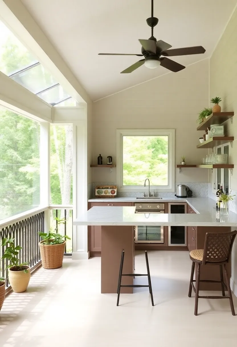 Transform your screened porch into a verdant oasis by selecting the right plants that not only thrive in these semi-outdoor spaces but also enhance the aesthetic of your stylish bar area. Consider incorporating fiddle leaf figs, known for their dramatic, large leaves that bring an element of sophistication. Another excellent choice is the snake plant, which is low-maintenance and thrives in various lighting conditions. Adding a touch of color with pothos can also create an inviting atmosphere; its trailing vines can elegantly drape over shelves or railings, making your bar area feel alive and vibrant.