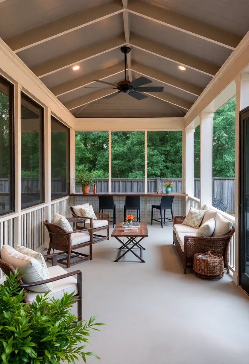Another smart approach to seasonal planning is to integrate deployable features into your porch design. As a notable example, consider a retractable screen system that allows for easy transition between open-air and more enclosed spaces, protecting you from unexpected weather while still enjoying nature. Establishing a list of adaptable furniture will enhance the usability of your bar area year-round. You might want to include items like: