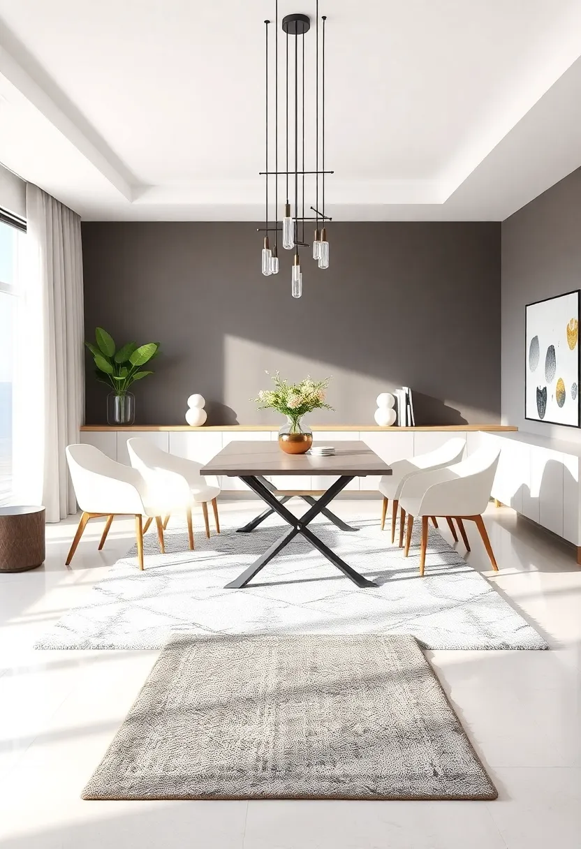Beyond aesthetics, rugs also provide practical benefits by absorbing sound and protecting flooring. To create a harmonious look, ensure that the rug’s size complements your dining table—typically, it should extend at least 24 inches beyond the edges of the table. Here’s a quick overview of popular rug shapes and their corresponding dining table setups: