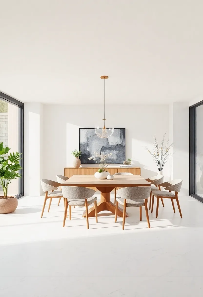 Accent your dining area with strategically placed greenery and earthy decor.Potted plants, such as ferns or snake plants, can heighten the aesthetic appeal while improving air quality. Use simple yet elegant planters in ceramic or terracotta finishes that echo the organic vibe.For another touch, consider a statement centerpiece comprising a selection of natural elements—such as succulent arrangements or driftwood sculptures—displayed on a stylish tray. These small, intentional details can pull the design together, striking a balance between luxury and comfort and inviting a cozy yet sophisticated dining experience.