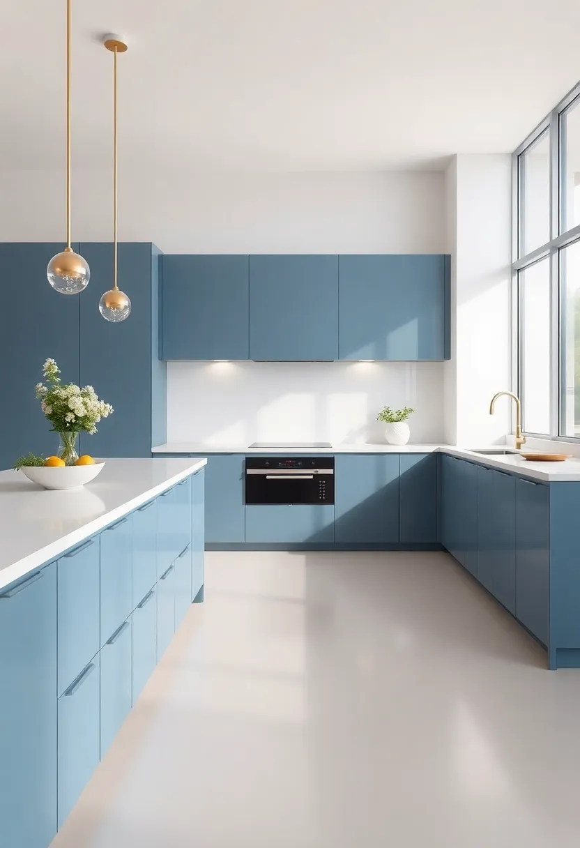- Rich Navy Blue paired with Warm Brass Fixtures for a luxurious touch.