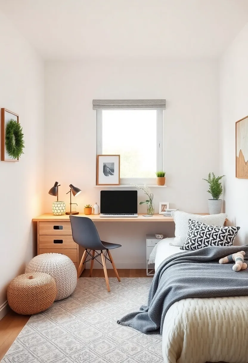In addition to these elements, selecting decor items made from natural fibers such as jute, hemp, or rattan can further deepen the connection to nature. Adorn your room with woven baskets for storage or a chunky knit throw draped over the bed to provide both comfort and an organic texture. Consider designating a cozy reading nook with an oversized bean bag or a hammock chair suspended from the ceiling, surrounded by natural light from large windows, to create a serene space for relaxation and creativity. Combining these features stimulates a harmonious living habitat conducive to both study and leisure.