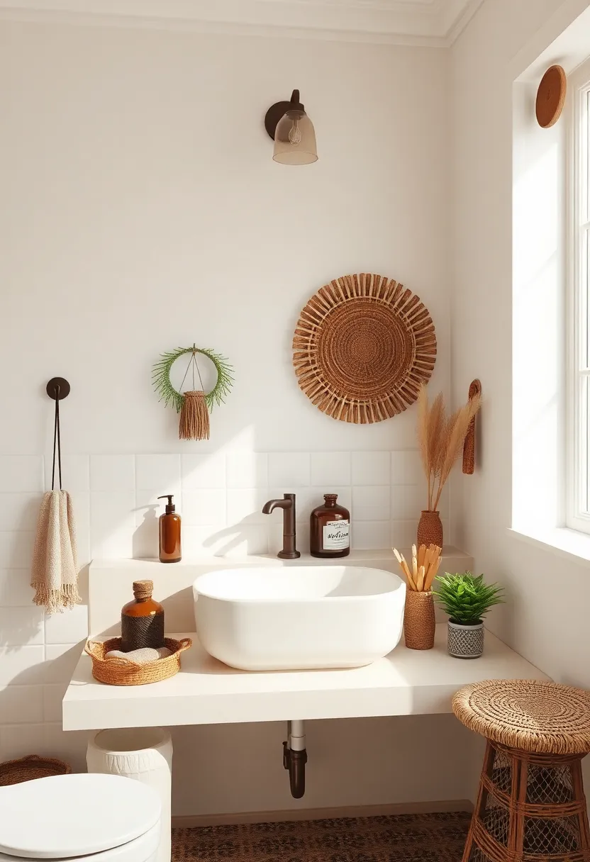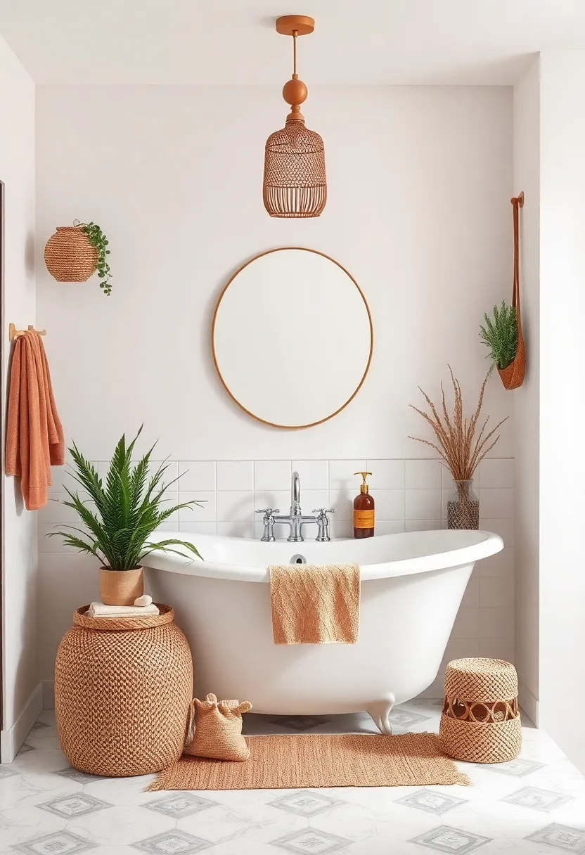 Incorporating natural elements into your bathroom not only enhances its aesthetic appeal but also creates a soothing atmosphere reminiscent of the great outdoors. Consider using materials like reclaimed wood,stone,and ceramics to add rustic charm. Vintage boho décor thrives on textures, and these natural materials can create a cohesive look. You might incorporate wooden shelving for your bath products or a stone sink to serve as a focal point. Hang potted plants or fresh herbs like mint and lavender near a window or on shelves to introduce a dash of color and a fresh aroma, transforming your bathroom into a relaxing retreat.