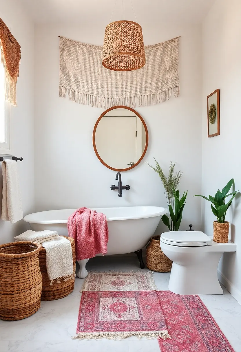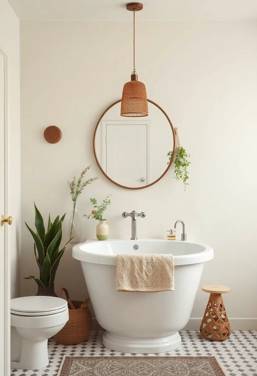 Adding vintage fixtures to your bathroom is an excellent way to create a cozy, nostalgic aura that blends seamlessly with the bohemian aesthetic. Start with unique vanities that showcase ornate details, such as carved wood or distressed finishes. Pair them with beautiful antique mirrors to enhance the light and space, drawing the eye while also offering allure and charm.Consider incorporating ceramic sinks with intricate patterns or colorful mosaics to tie the vintage theme together beautifully.