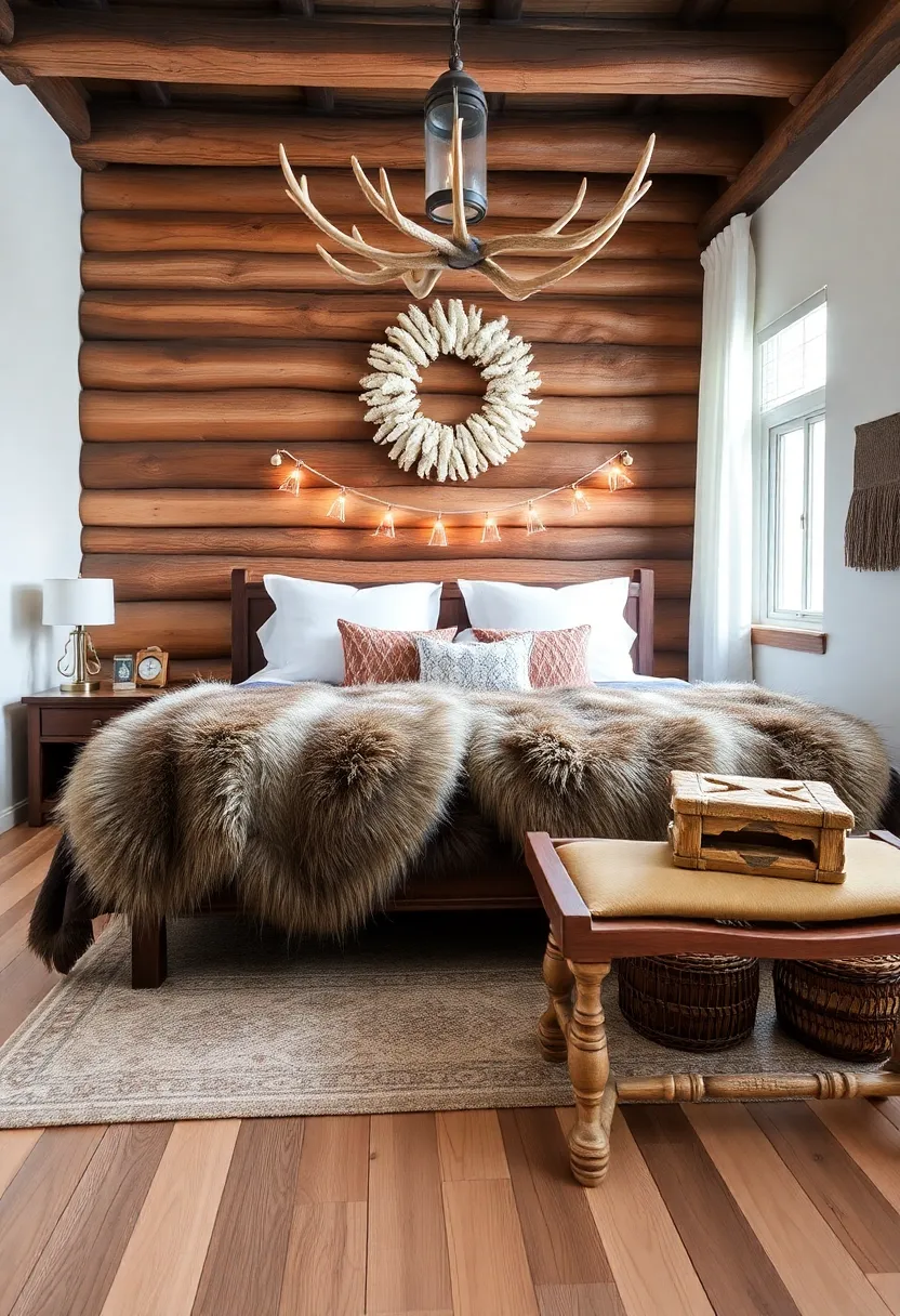 To complete the cozy ambiance, layer your bedding with luxurious fur throws that invite warmth and comfort. These soft textures contrast beautifully with the sturdy wood elements, creating a plush haven that beckons you to unwind after a long day. Accents such as antler-inspired decor bring a touch of wilderness indoors, evoking the rustic charm of a log cabin in the woods. Incorporate elements like antler lamps or wall art to accentuate the theme, enhancing the natural feel without overwhelming the space. Here’s a quick look at wood types that work beautifully in this setting: