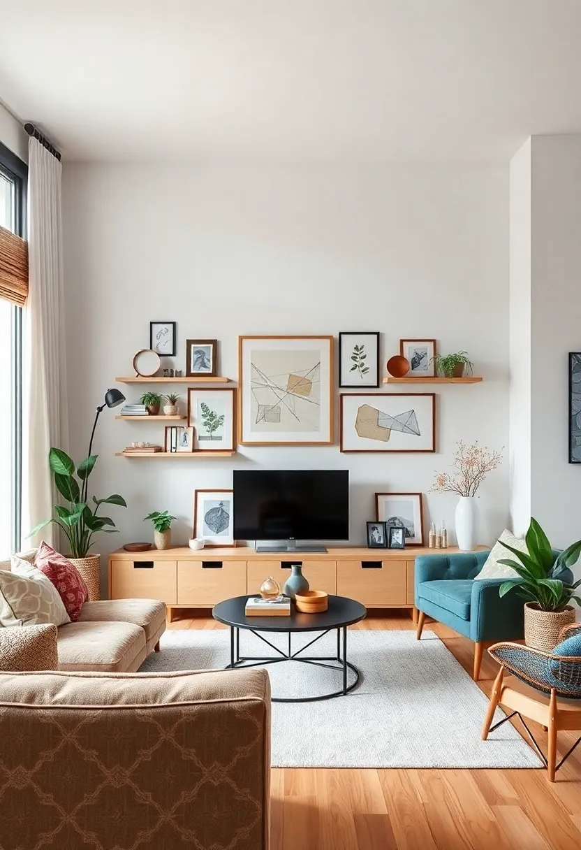 by thoughtfully arranging these elements, you not only create visual interest but also invite conversation and reflection. Your living room should be a place where every visitor can catch a glimpse of your journey, making it a true representation of the eclectic lifestyle you’re embracing.